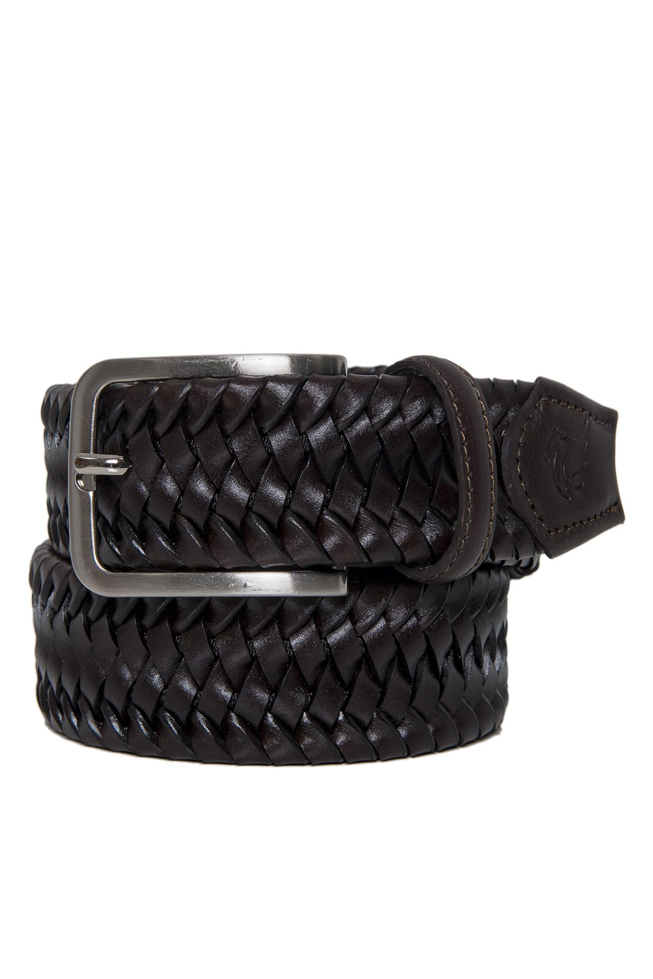 Cinta Marrone Intrecciata in Pelle