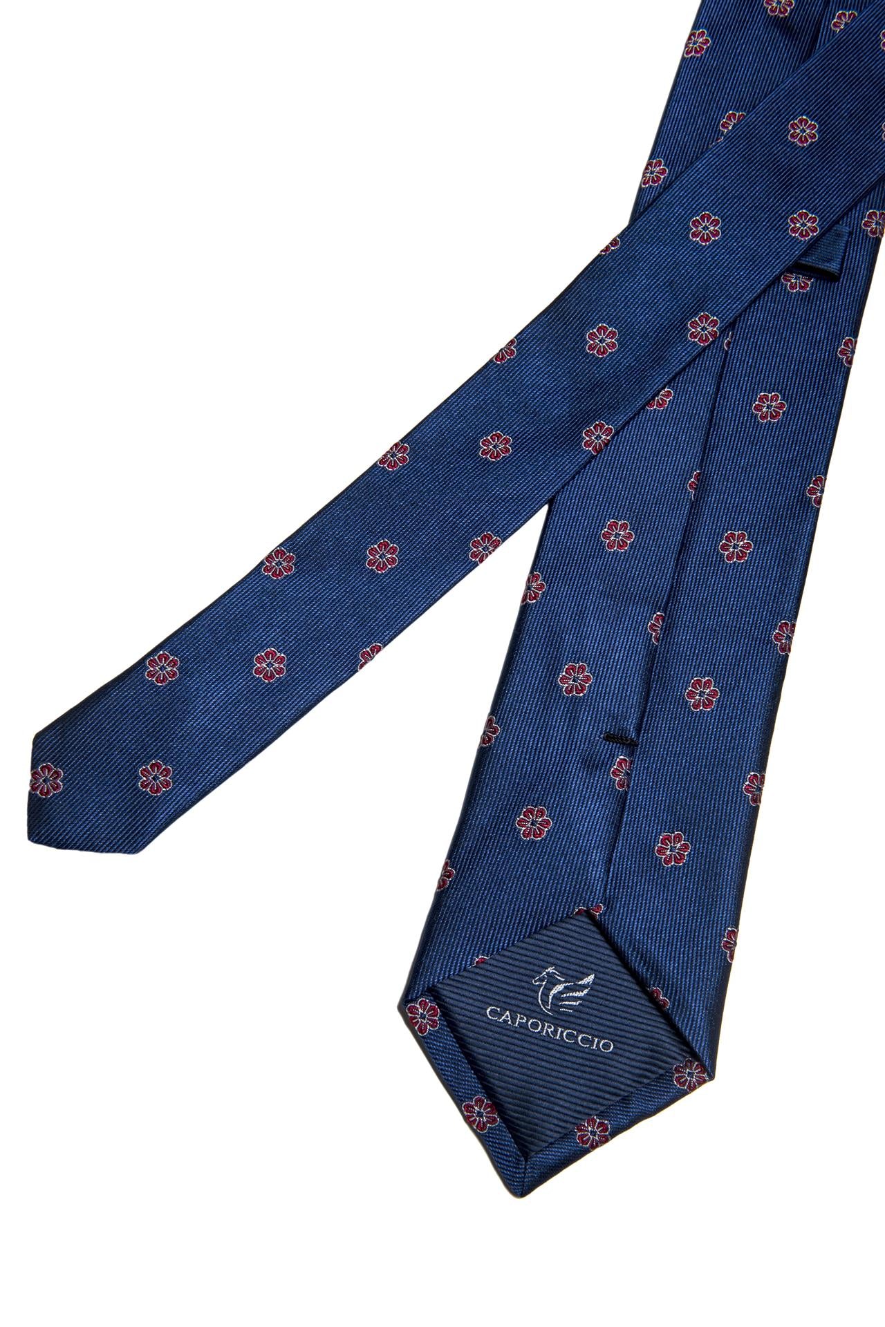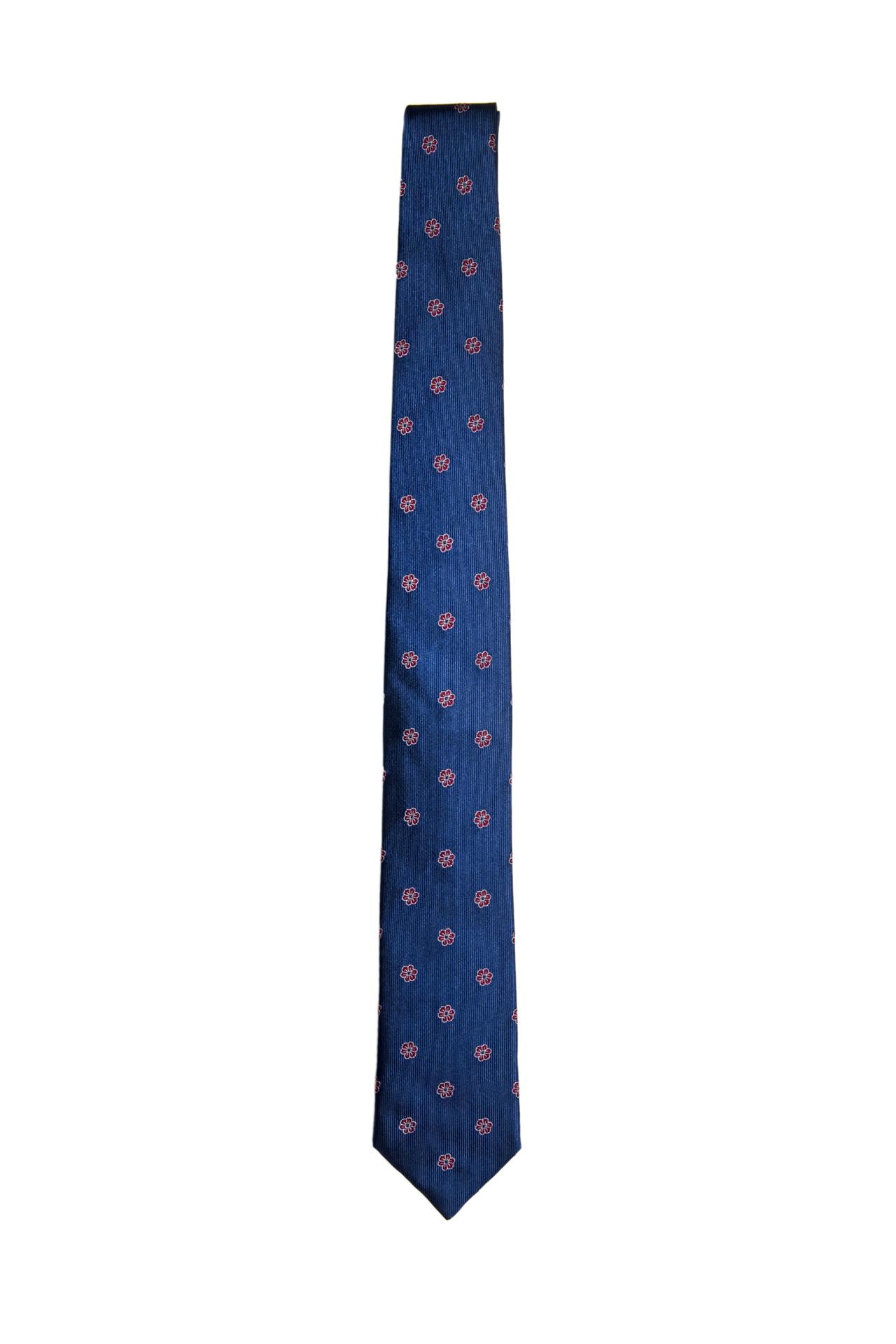 Cravatta Blu con Fiori Rossi