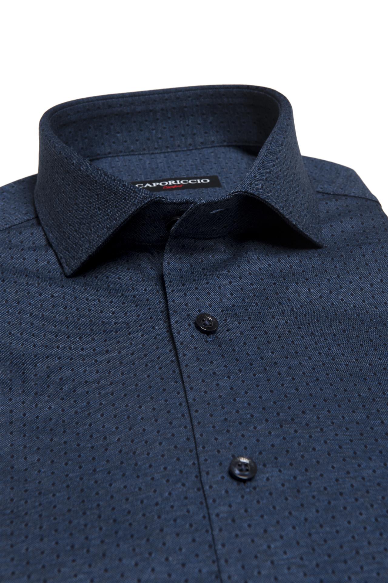Camicia Comfort Blu con Pois in Cotone Extrafine