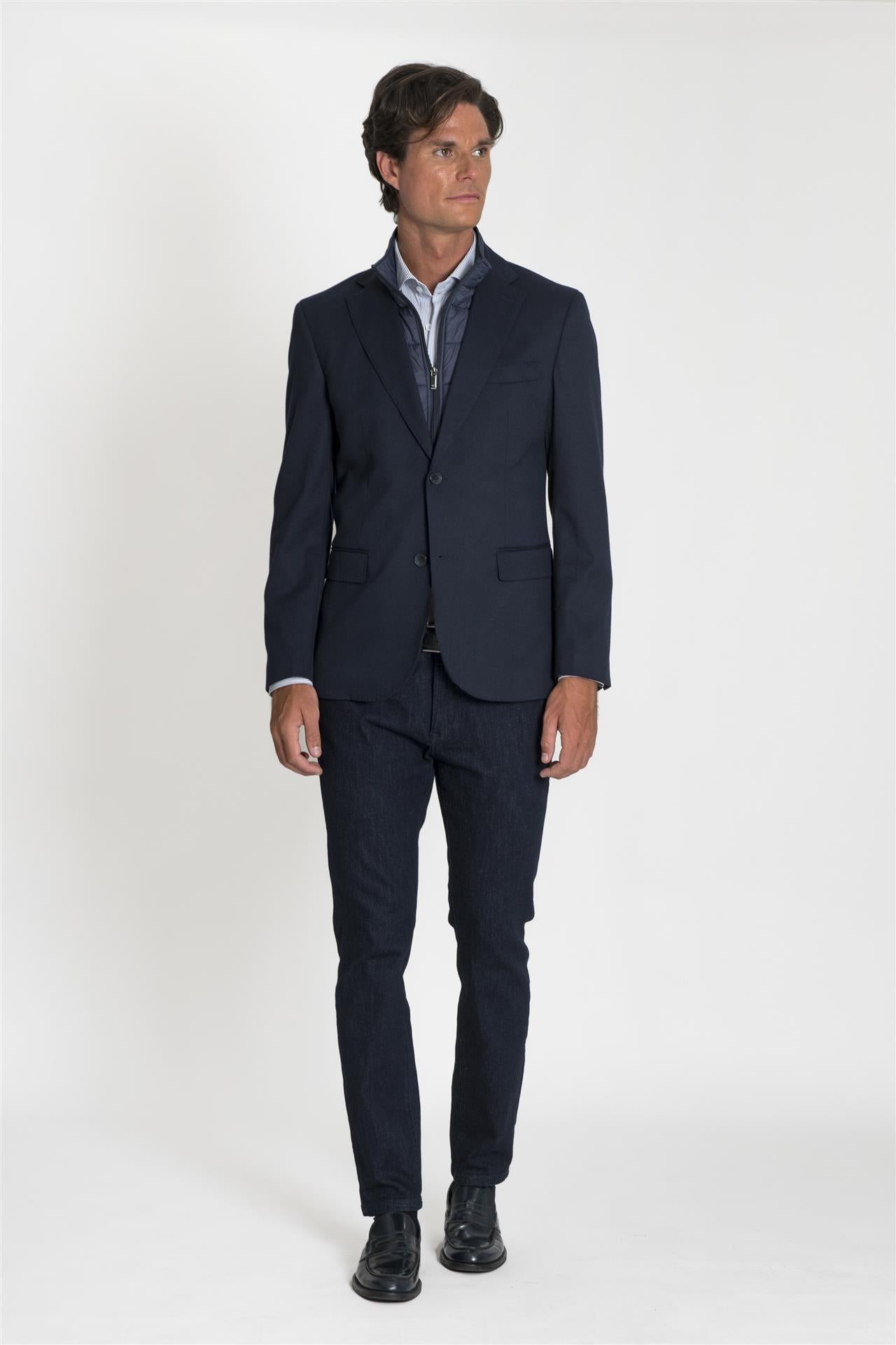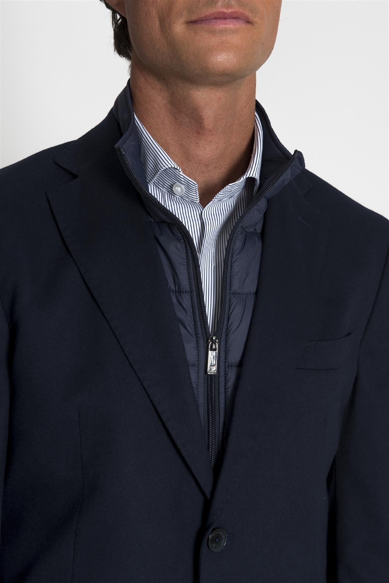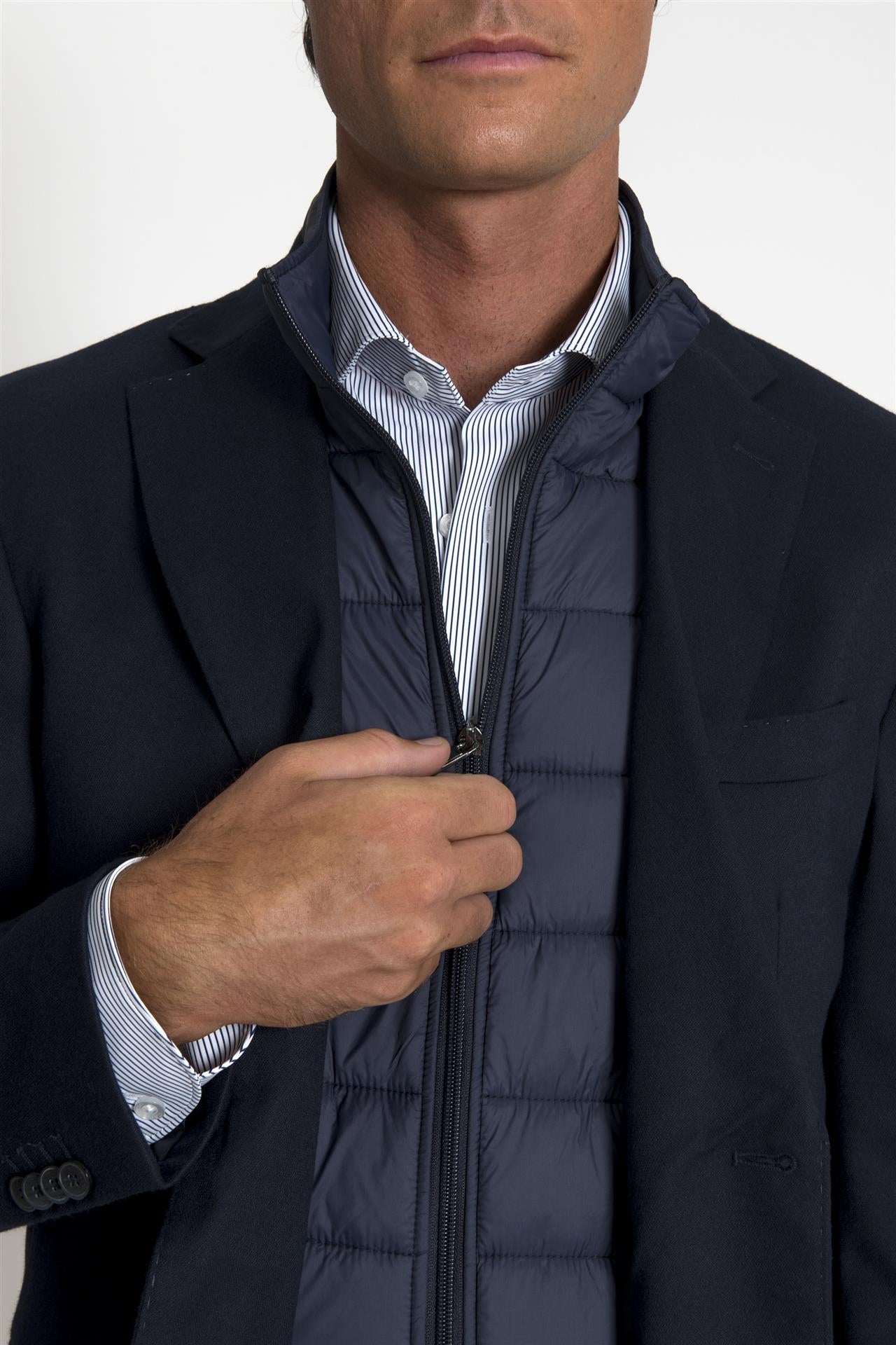 La Giacca blu regular fit con pettorina removibile rispecchia lo stile classico e l’intramontabile eleganza del marchio Caporiccio.