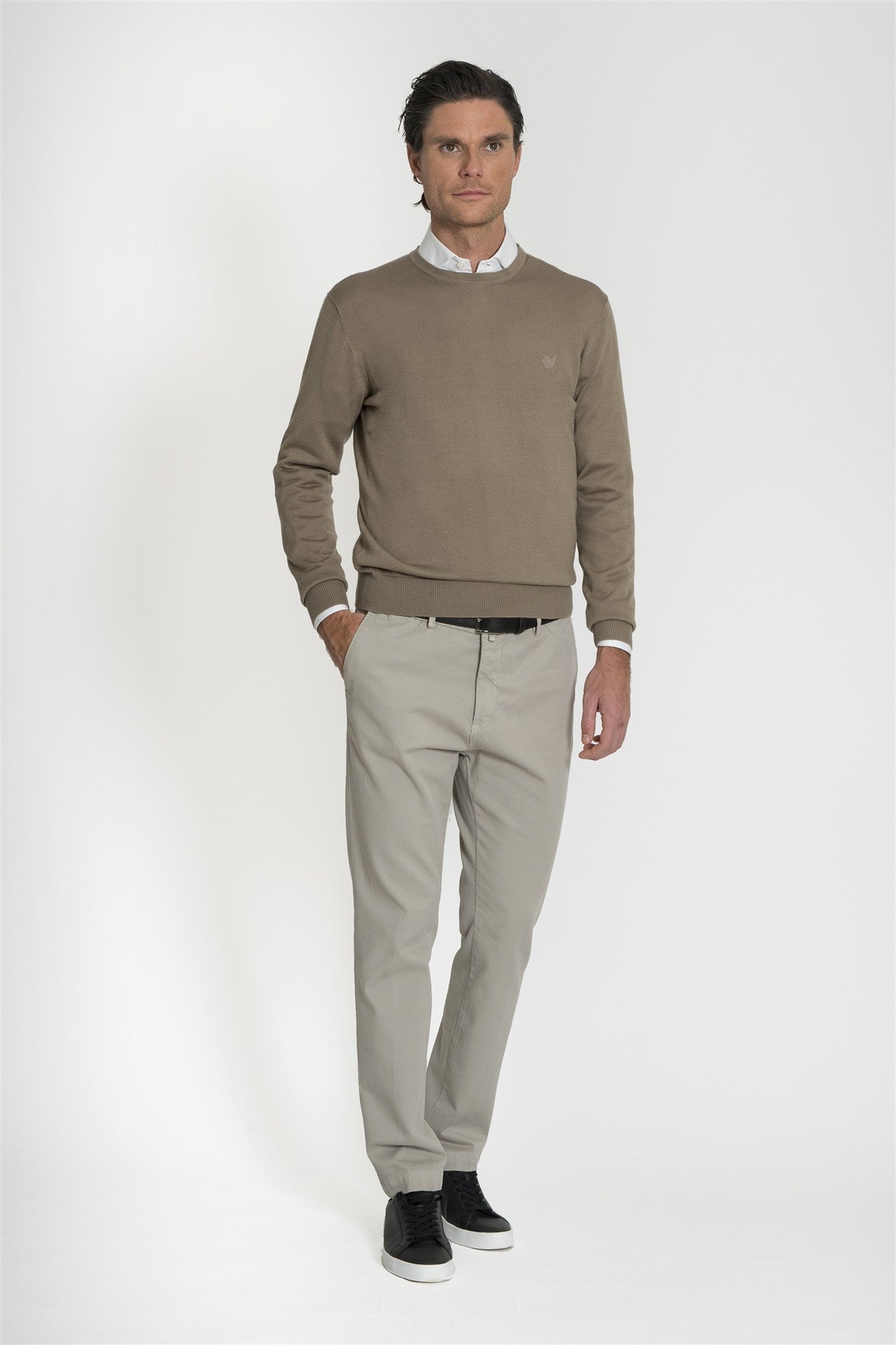 Girocollo Essential in Misto Merino - Maglia girocollo a manica lunga realizzata in un mix di fibre tecniche e lana merino, pensata per chi cerca un capo pratico, caldo e resistente. Il design pulito e la vestibilità asciutta la rendono un pezzo jolly, estremamente facile da abbinare sia sopra una camicia per un look professionale, sia da sola per contesti più informali.