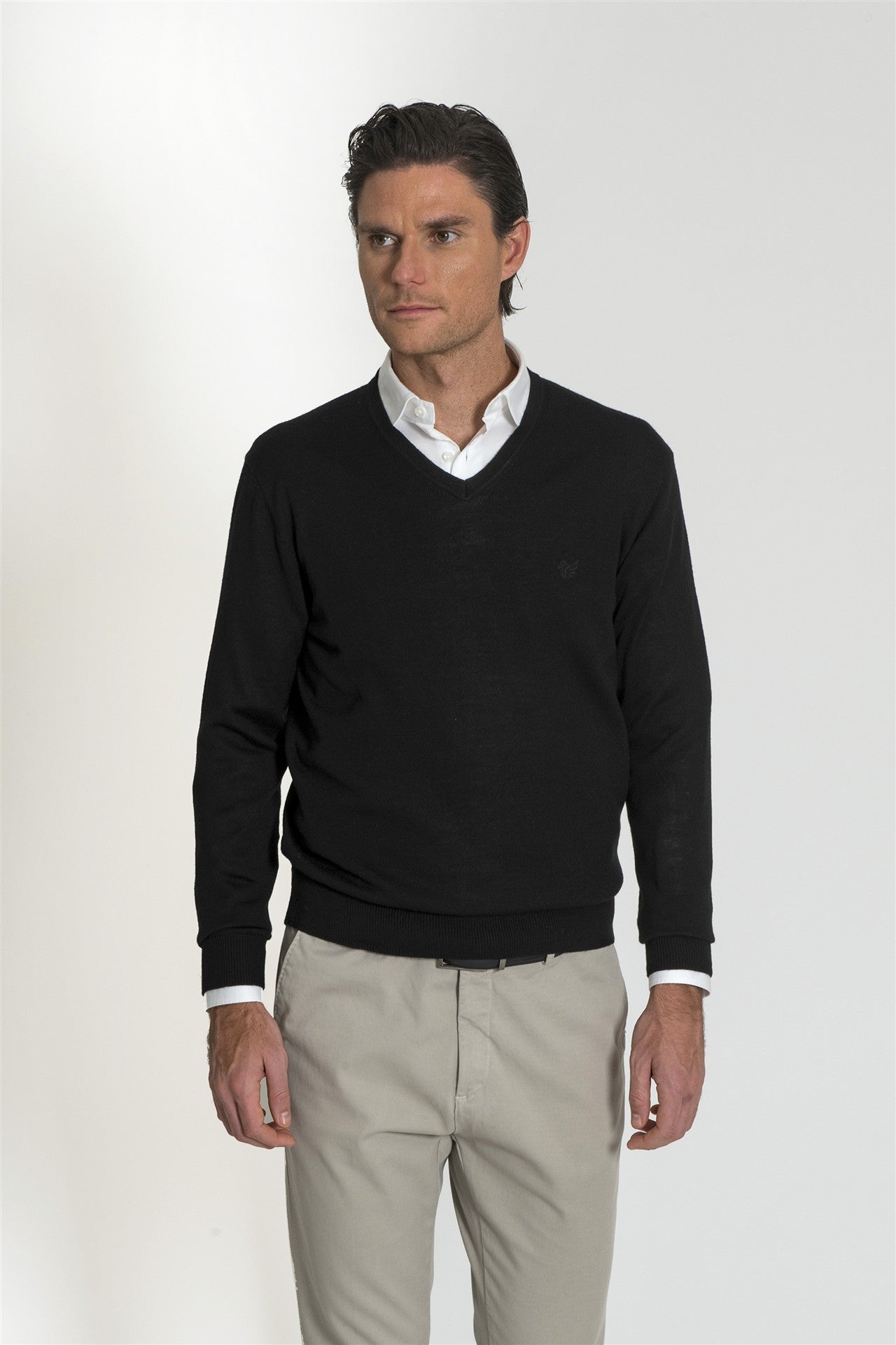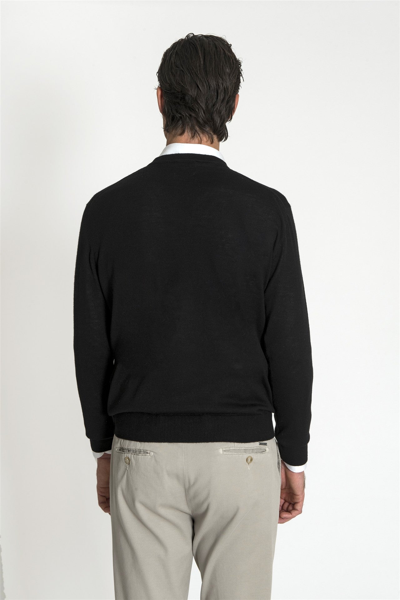 Maglia Scollo V Nera in Misto Merino