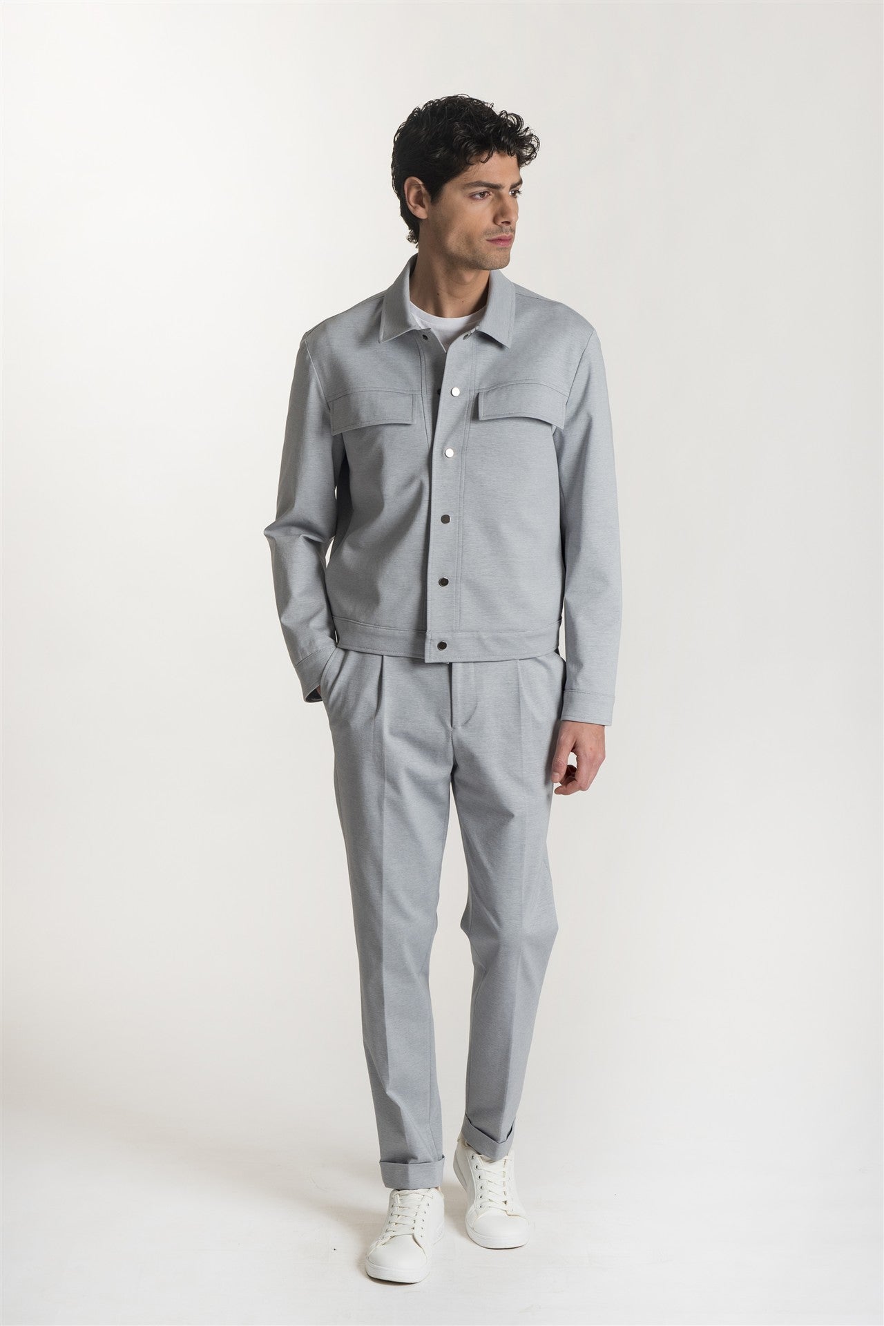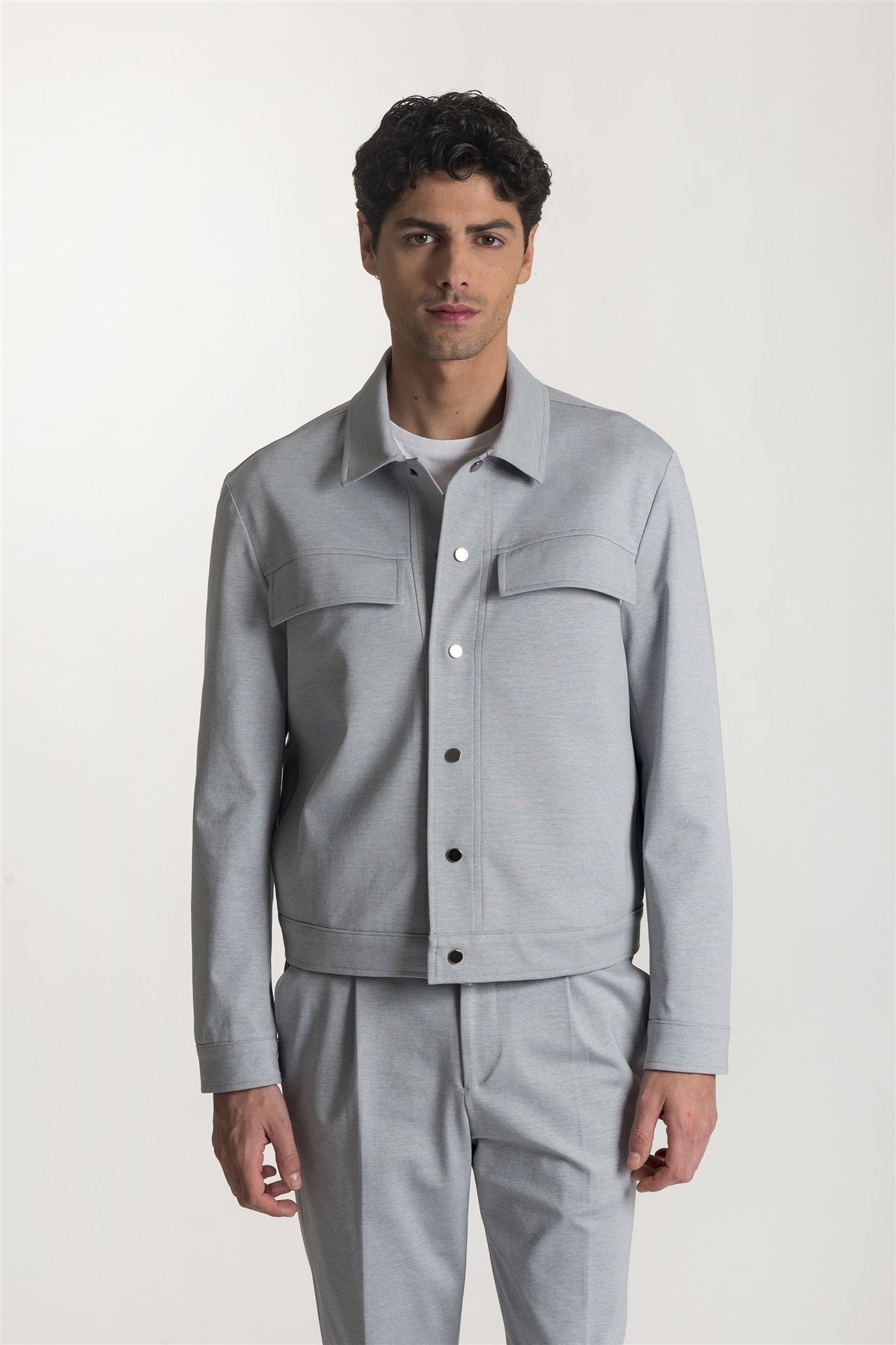 Giacca comfort doppiopetto grigia in maglina