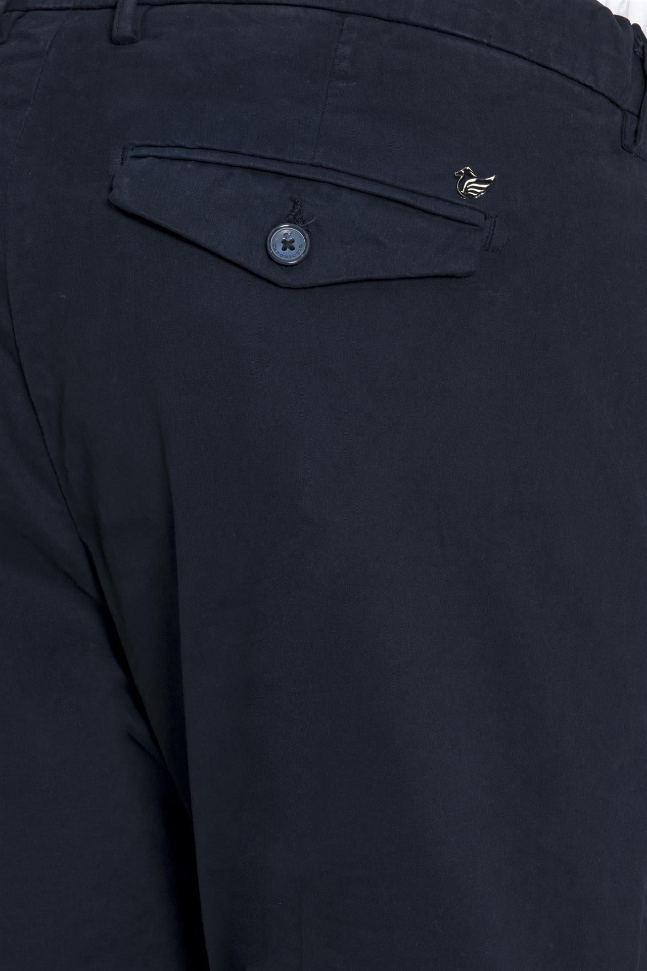 Un modello di pantalone lineare e raffinato, dai sottili accenti sartoriali che rispecchiano la tradizione del marchio Caporiccio. Confezionato per una vestibilità classica, questo modello tasca america risulta confortevole e versatile.