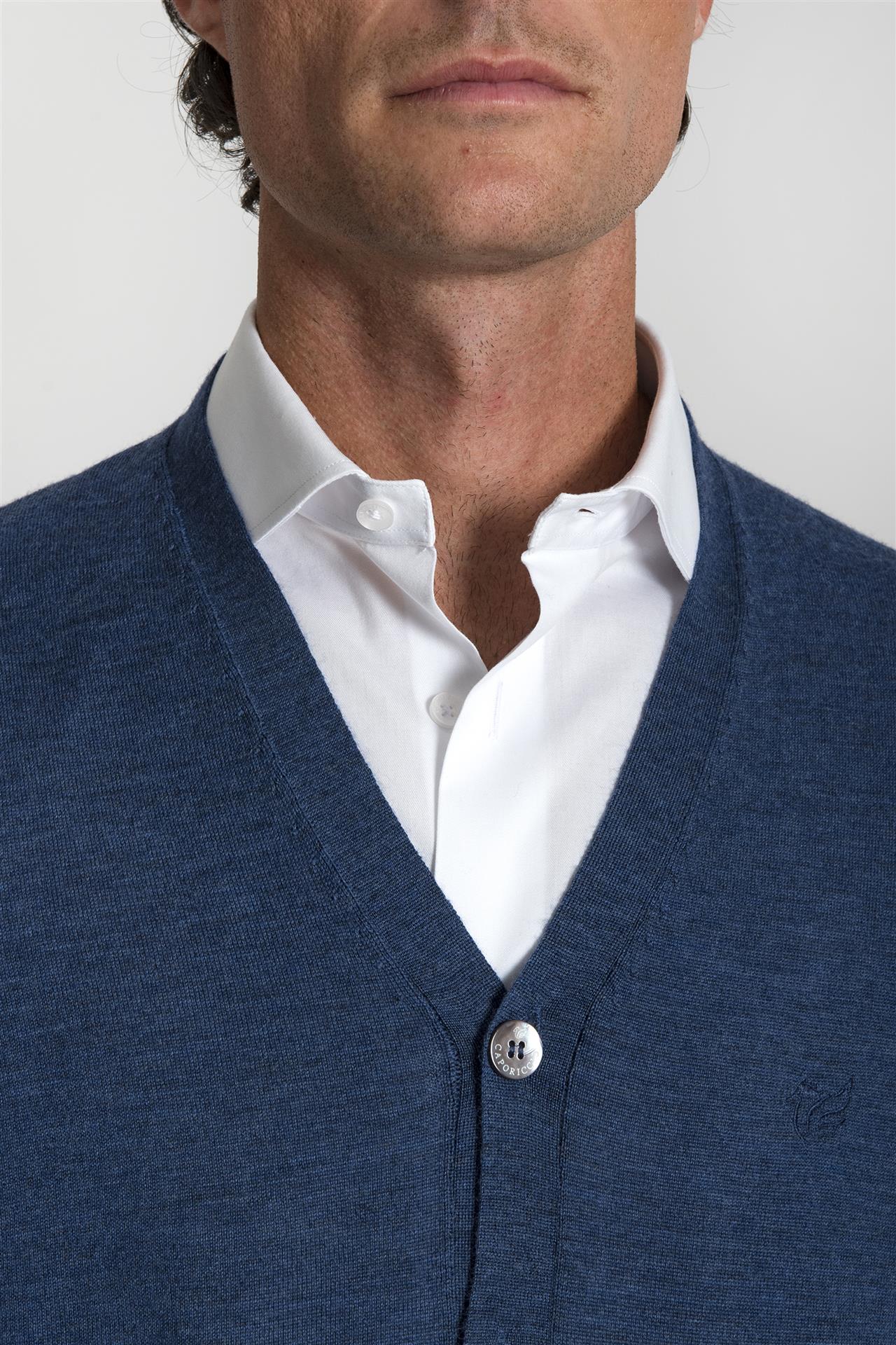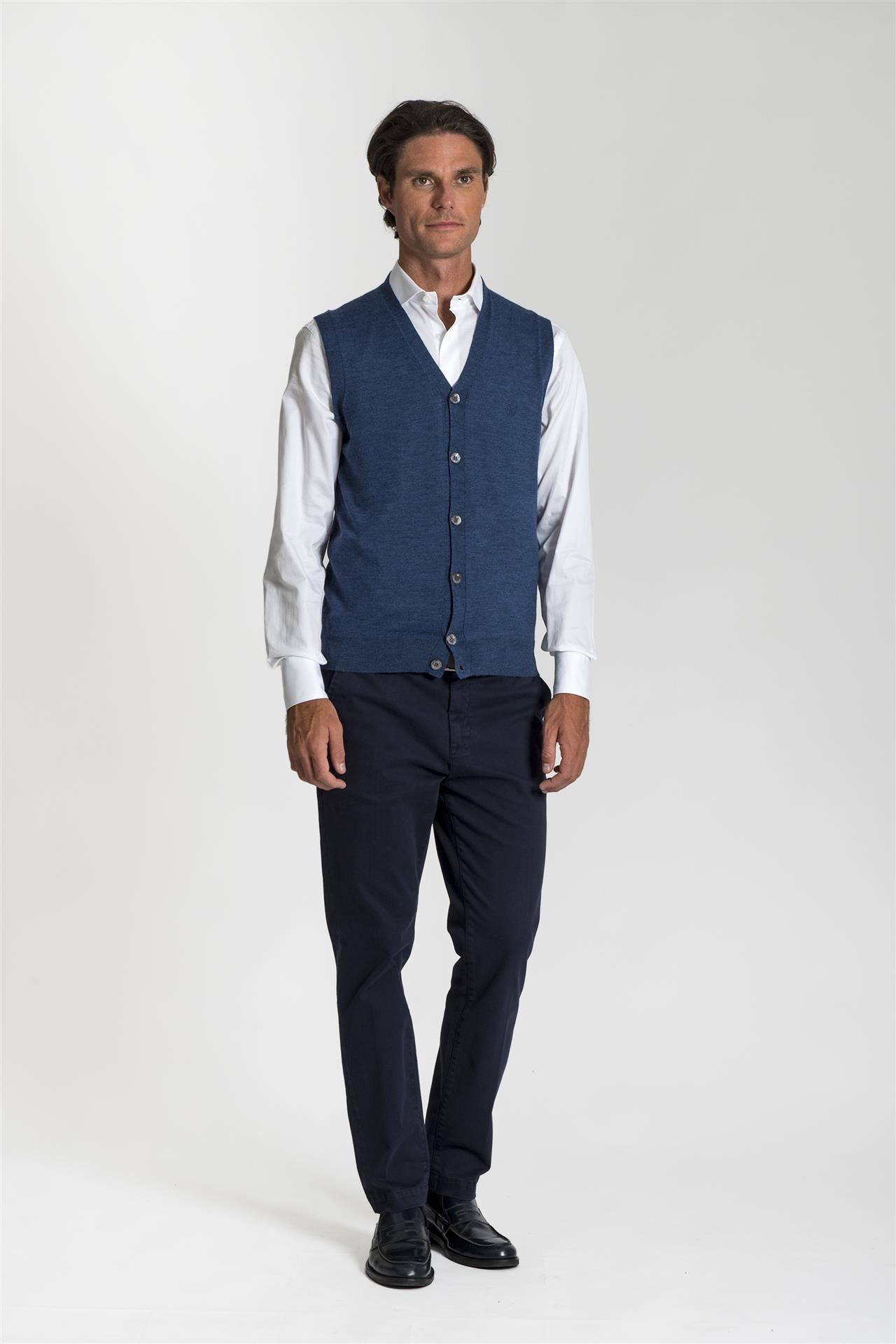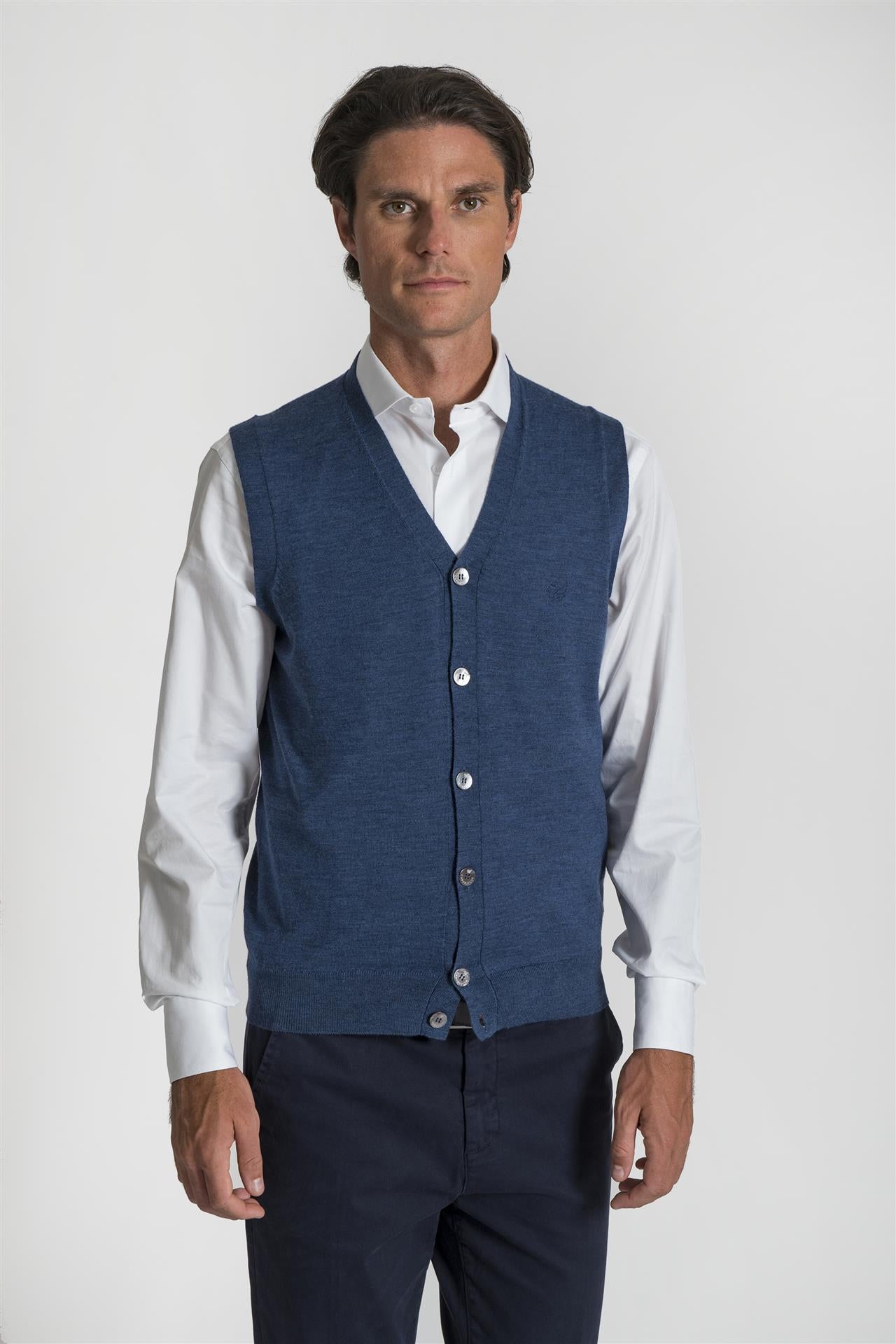 Gilet azzurro in pura lana merino