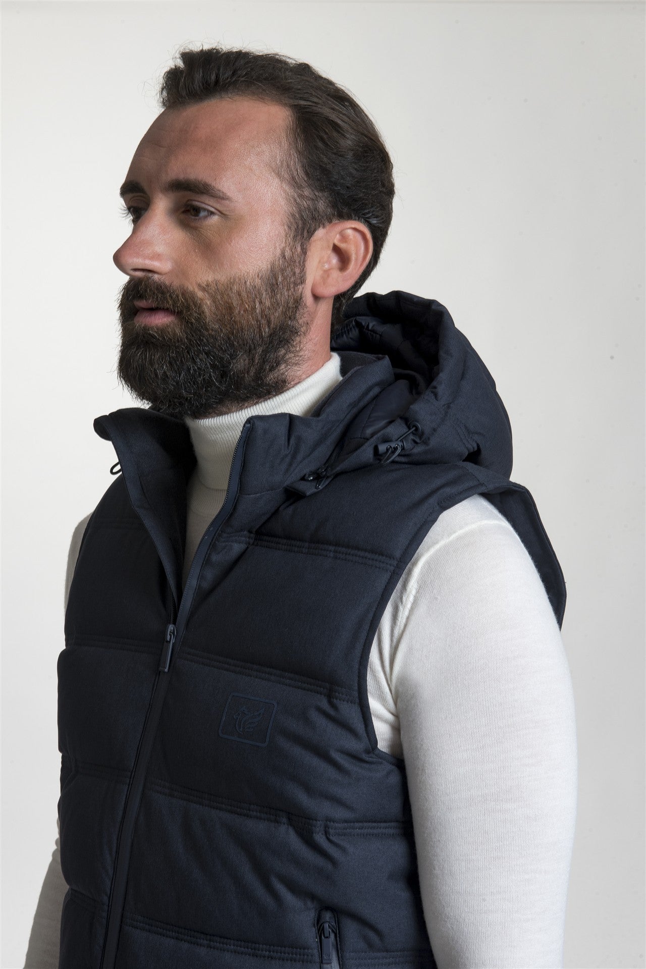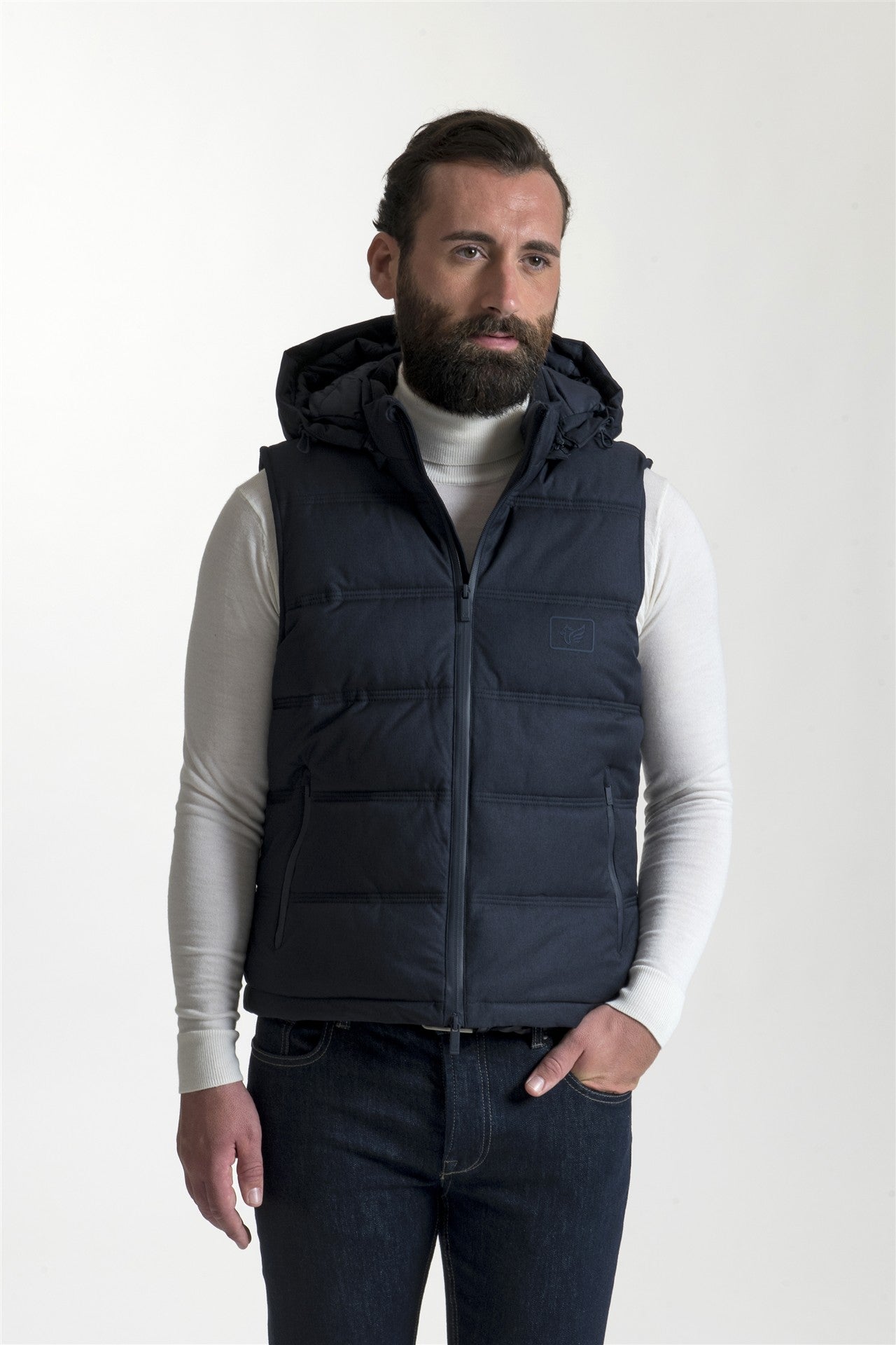 Capo spalla dinamico e funzionale, caratterizzato da un'imbottitura a canali orizzontali che offre un eccellente isolamento termico senza rinunciare alla leggerezza. Il design è arricchito da un pratico cappuccio integrato, chiusura frontale con zip e tasche laterali a filo, rendendolo l'elemento ideale per il "layering" stagionale sopra camicie in flanella o maglieria leggera.