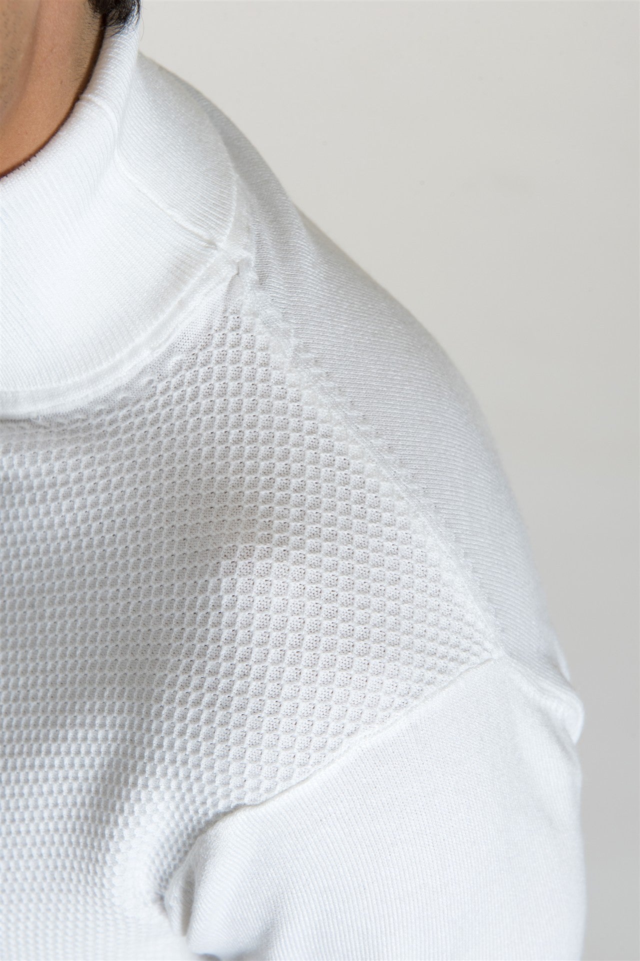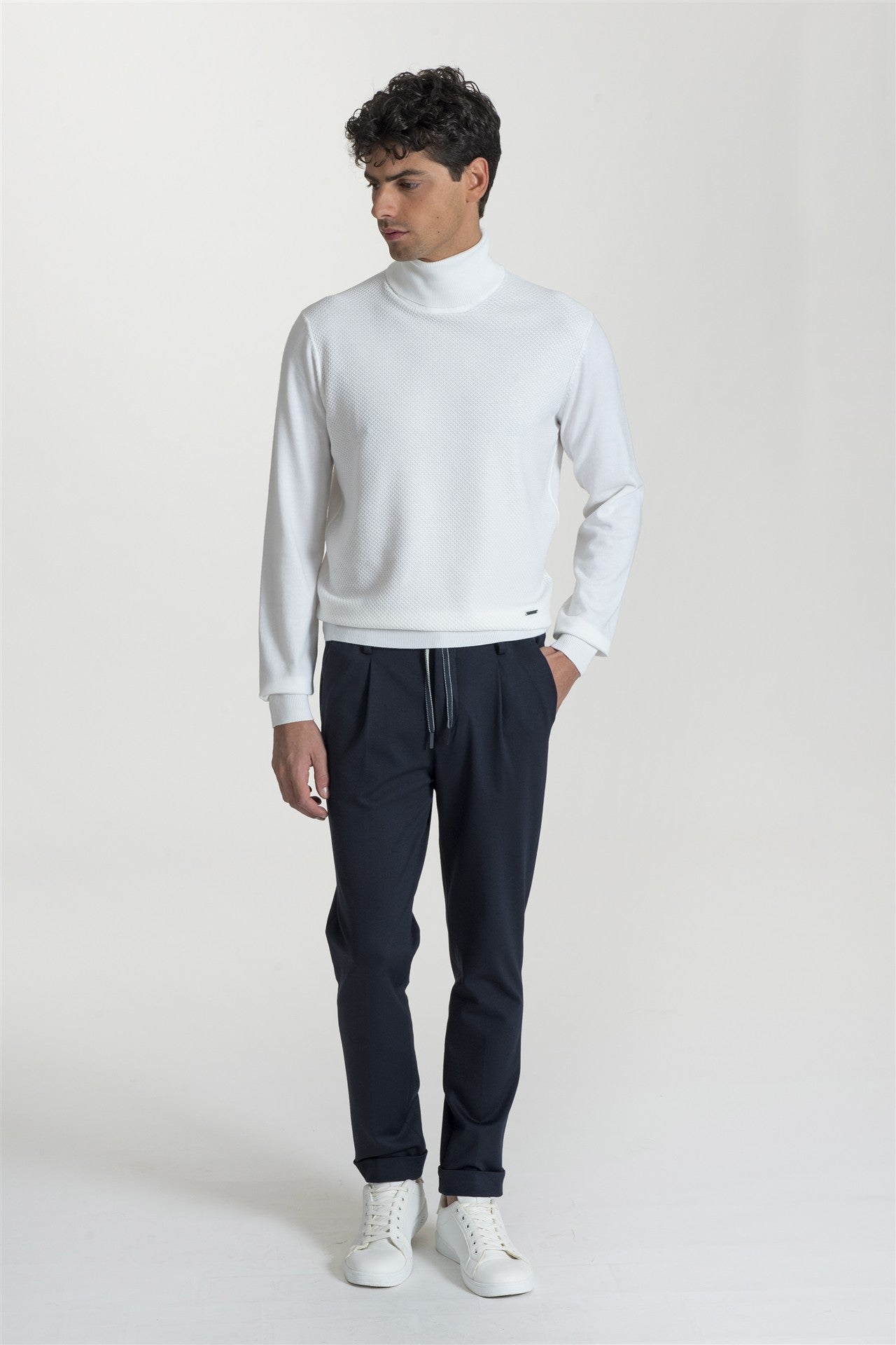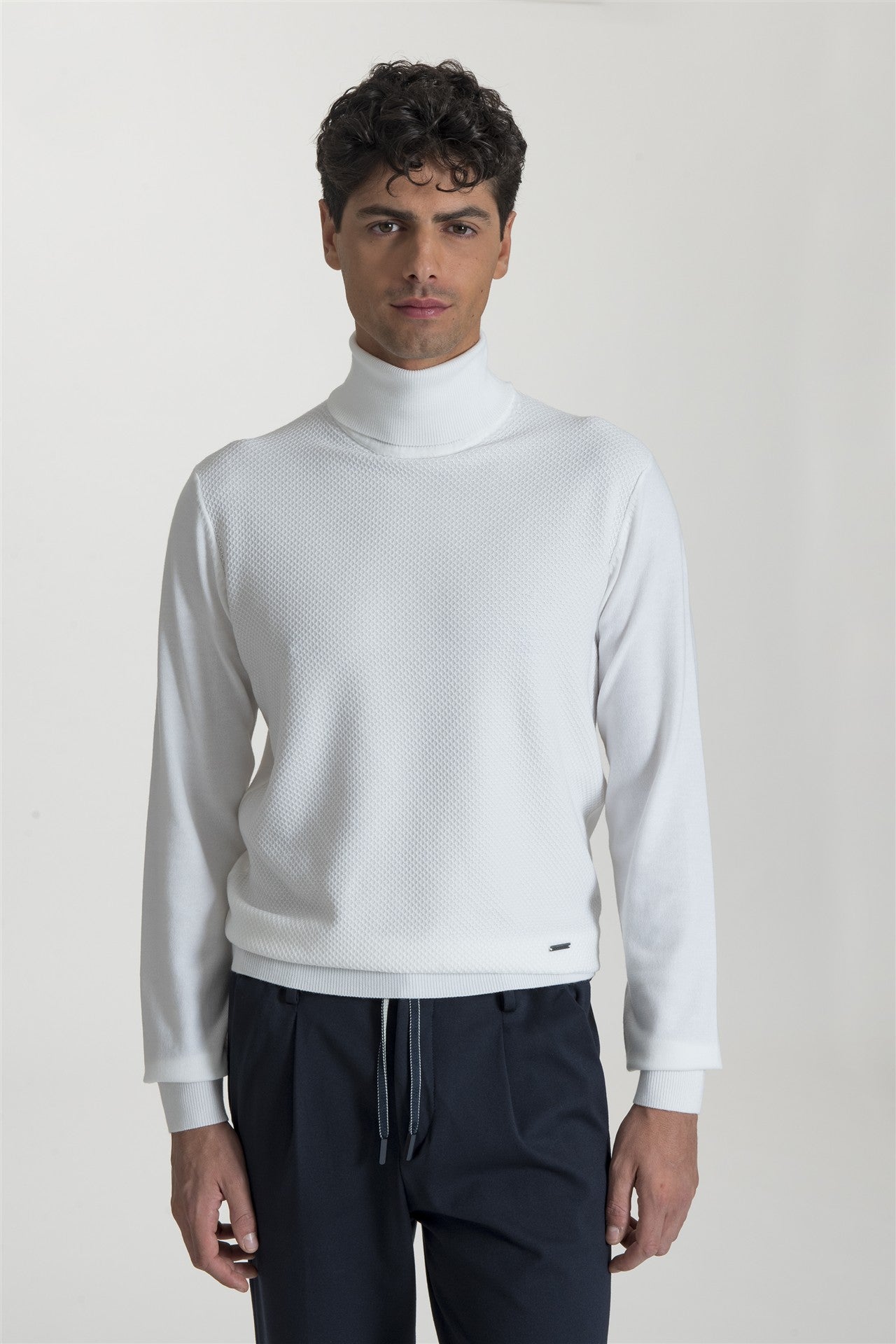 Dolcevita regular fit realizzato in un mix di fibre tecniche e lana merino, pensato per chi cerca un capo pratico, caldo e resistente. Il design pulito e il colore nero profondo lo rendono un pezzo jolly, estremamente facile da abbinare sia in contesti formali che casual.