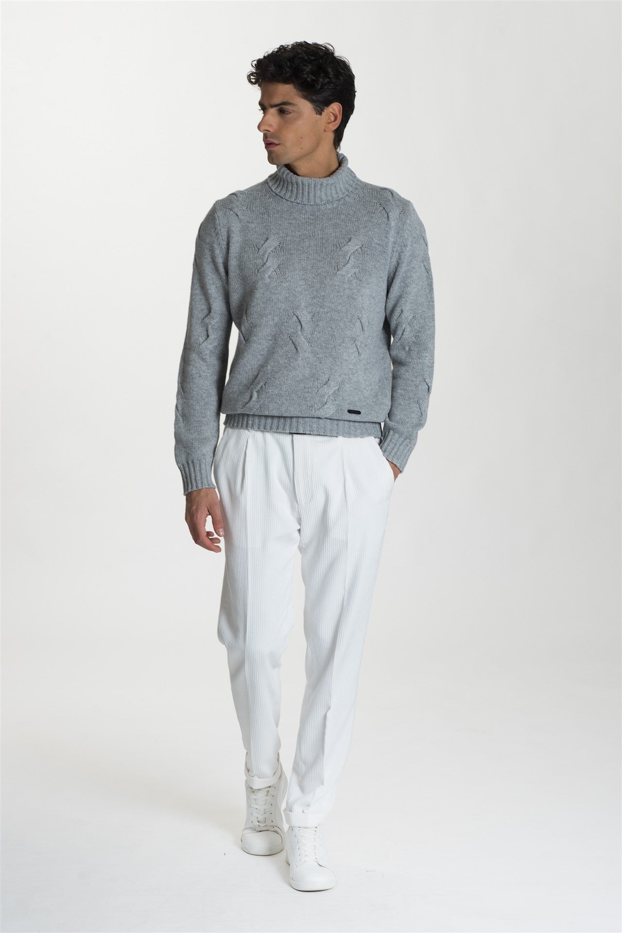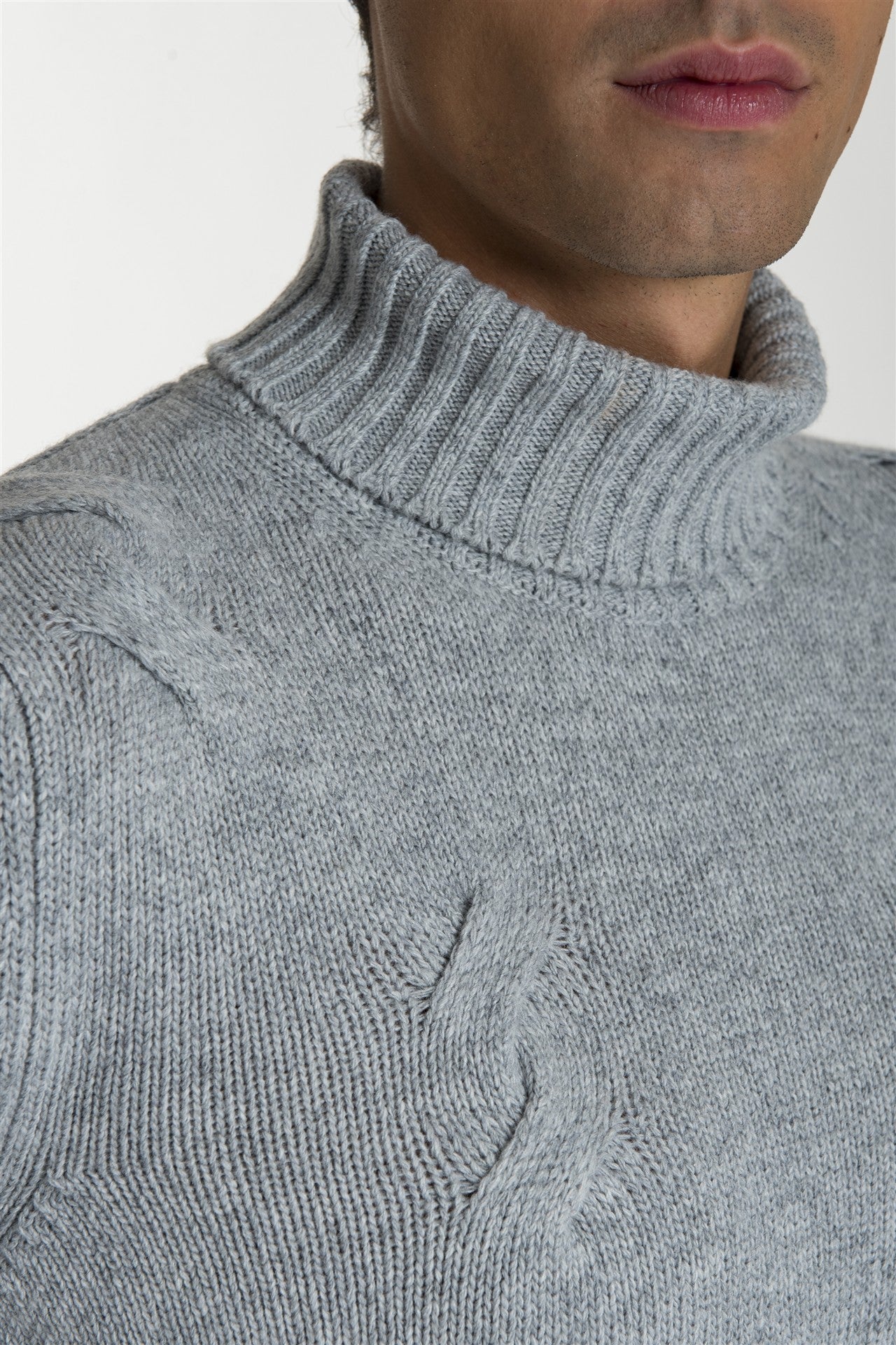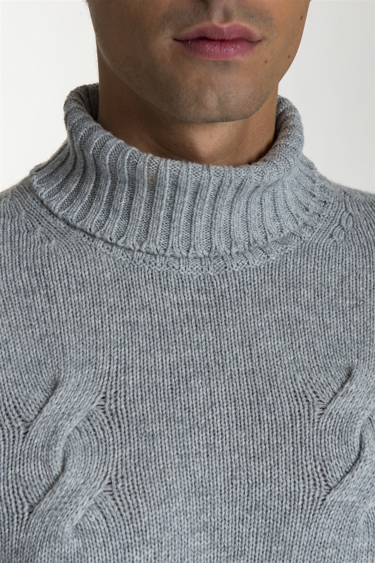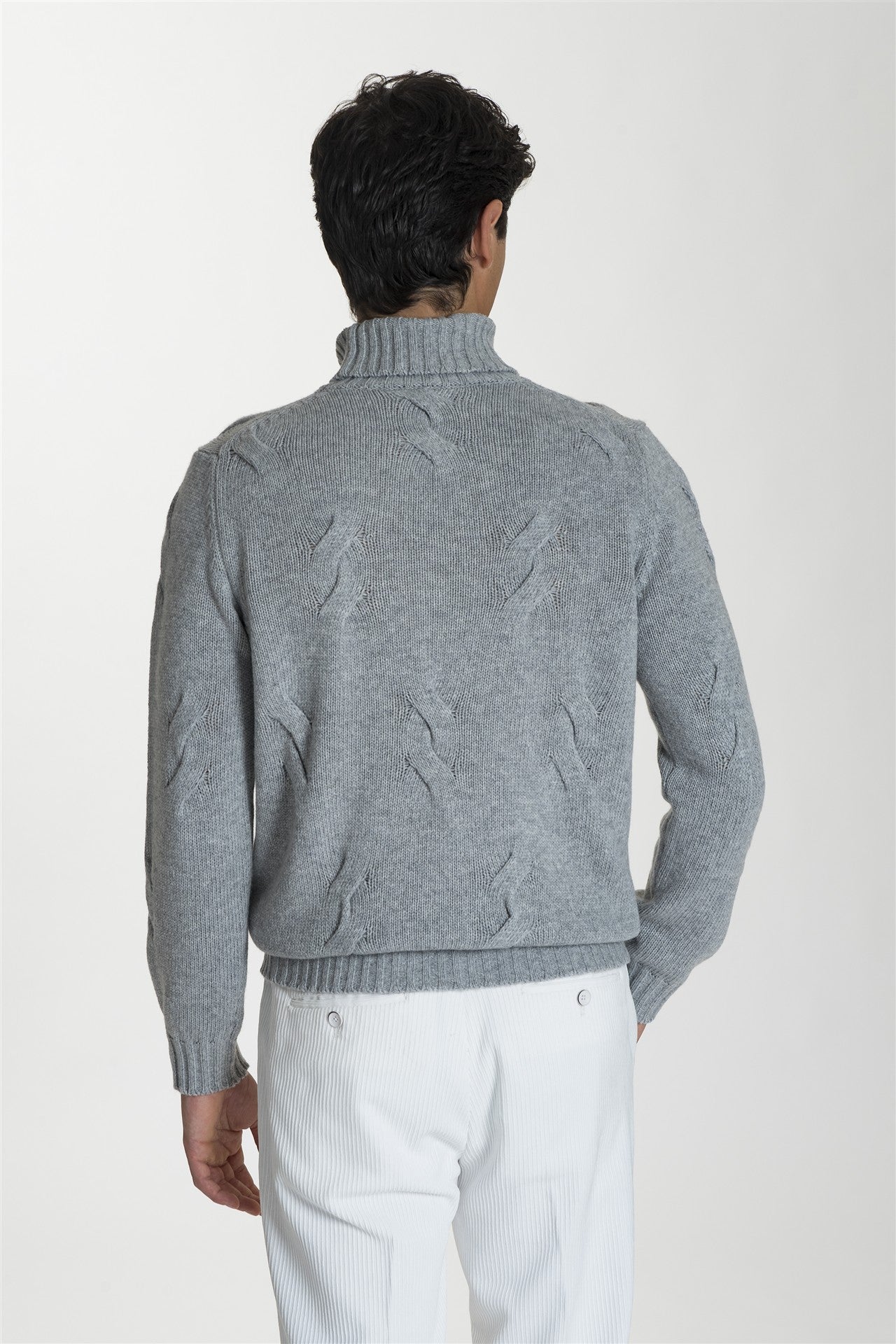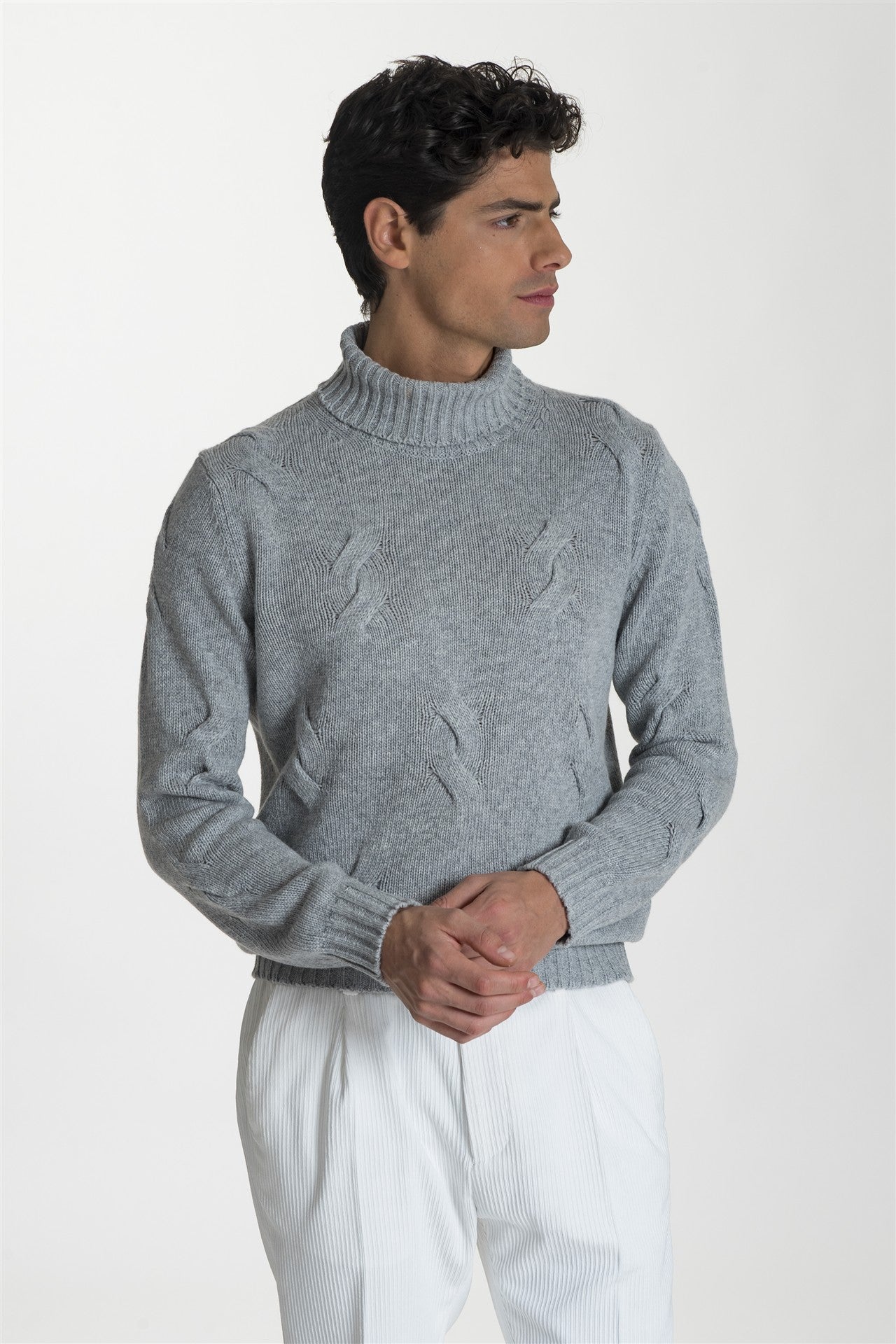 Elegante dolcevita con lavorazione a trecce, realizzato in un pregiato blend di lana merino e cashmere per il massimo comfort termico. La vestibilità regular e il design classico lo rendono un'aggiunta versatile e raffinata a ogni guardaroba maschile, perfetto da abbinare a pantaloni sartoriali o denim chiari.