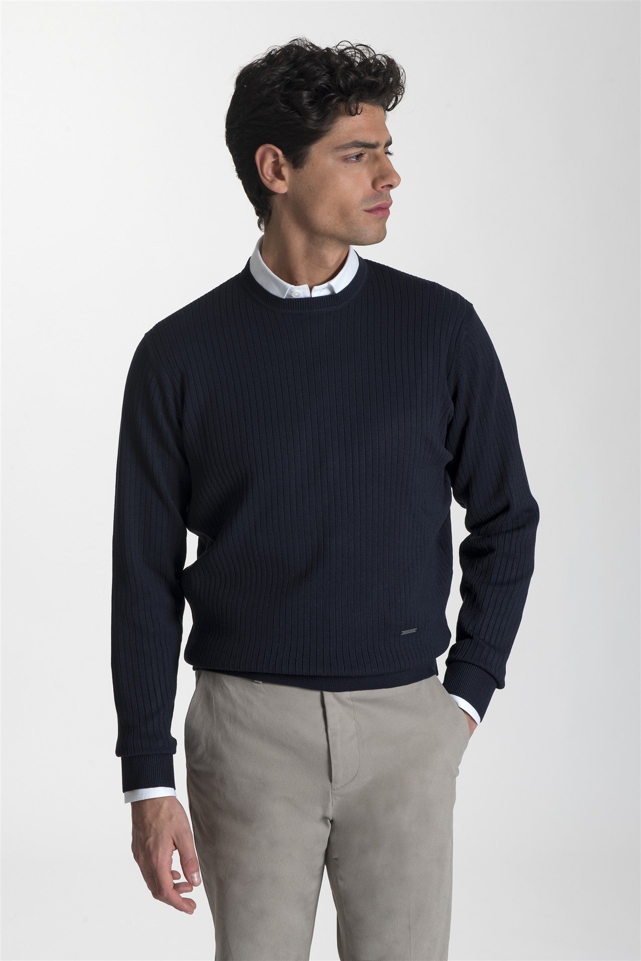 Maglia girocollo lavorata blu scuro