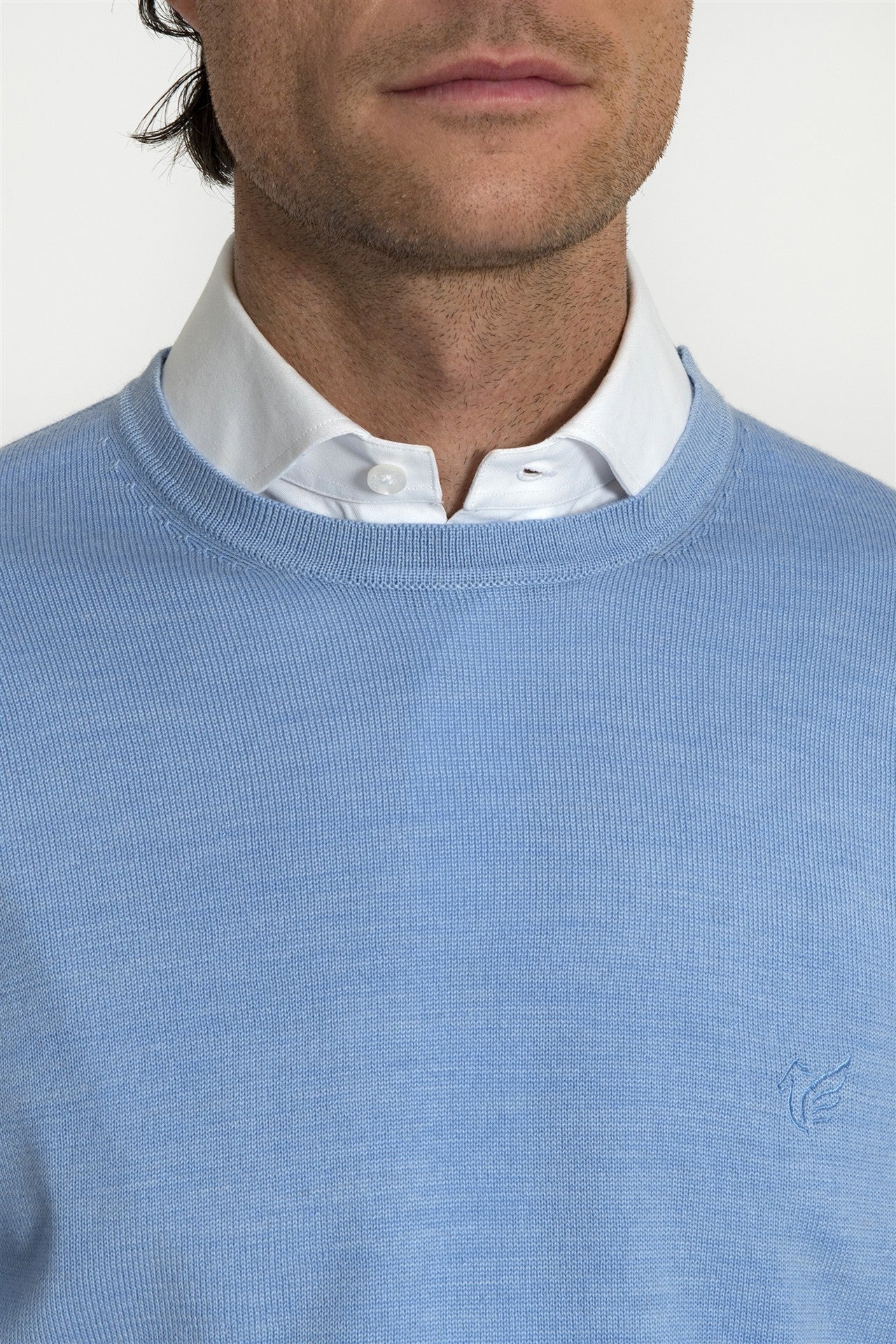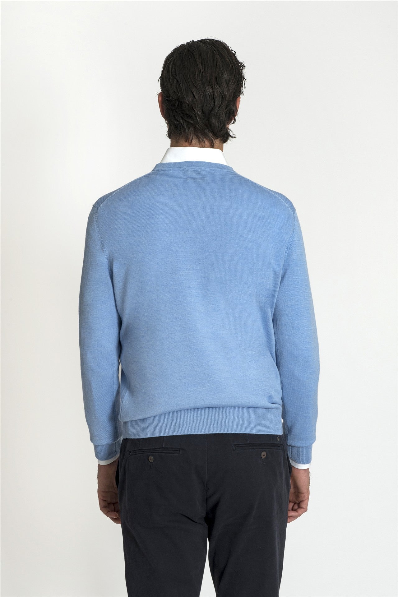 Girocollo Celeste in Misto Merino