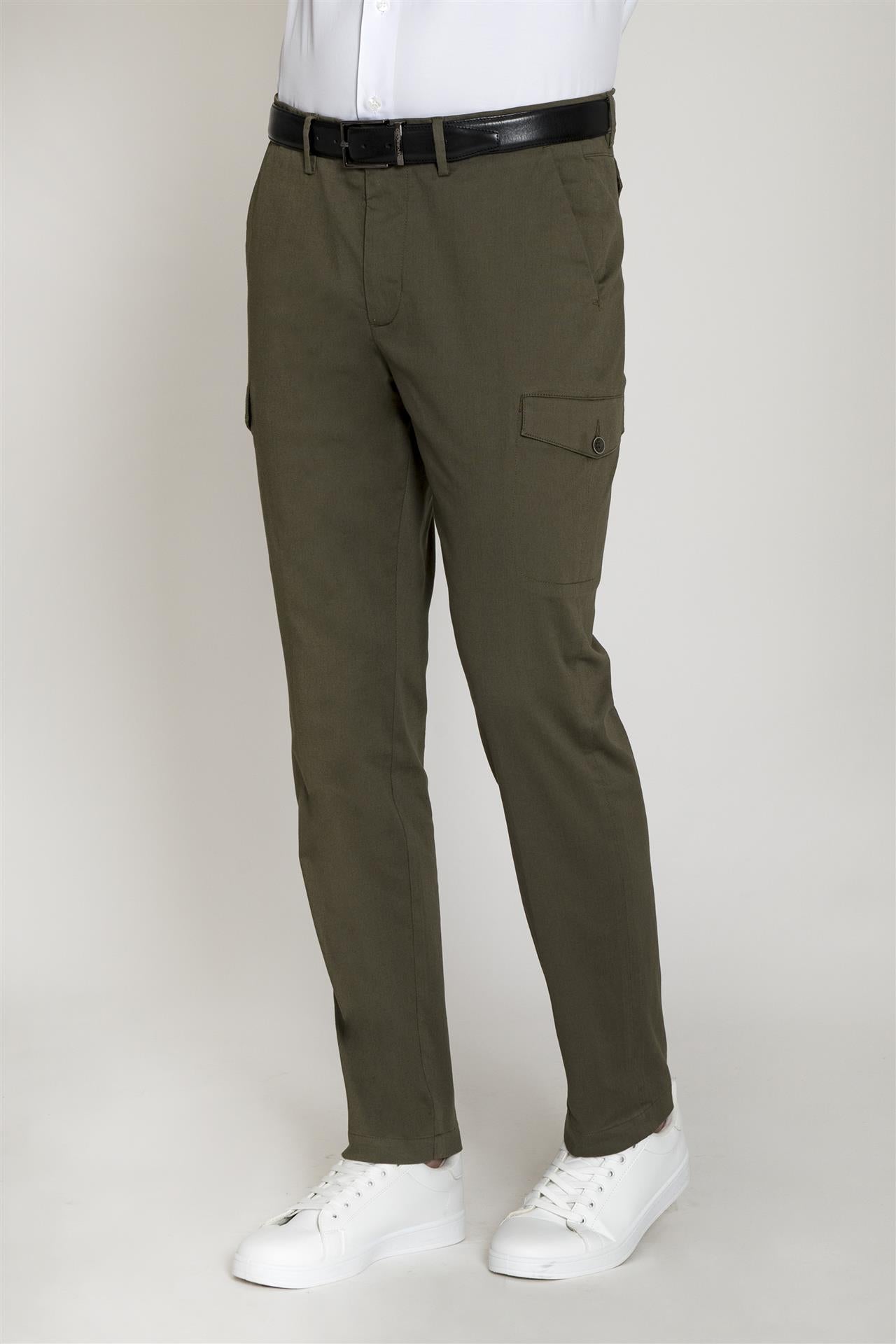 Pantalone Cargo Urban Slim - Pantalone dallo stile dinamico realizzato in cotone stretch, pensato per chi cerca un capo pratico senza rinunciare a una silhouette definita. Il design funzionale, arricchito dalle iconiche tasche laterali, lo rende un pezzo jolly ideale per outfit casual-smart o per il tempo libero.