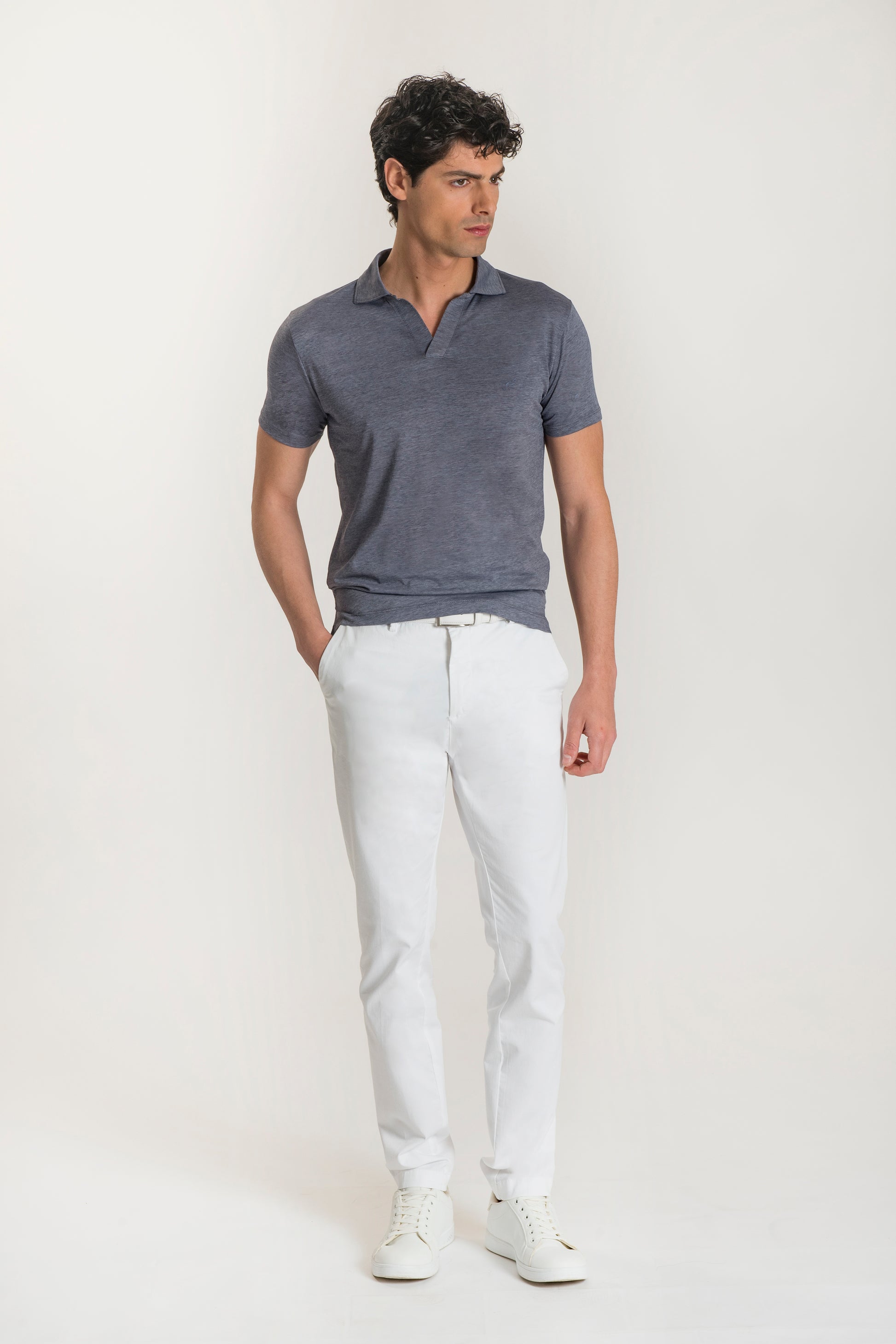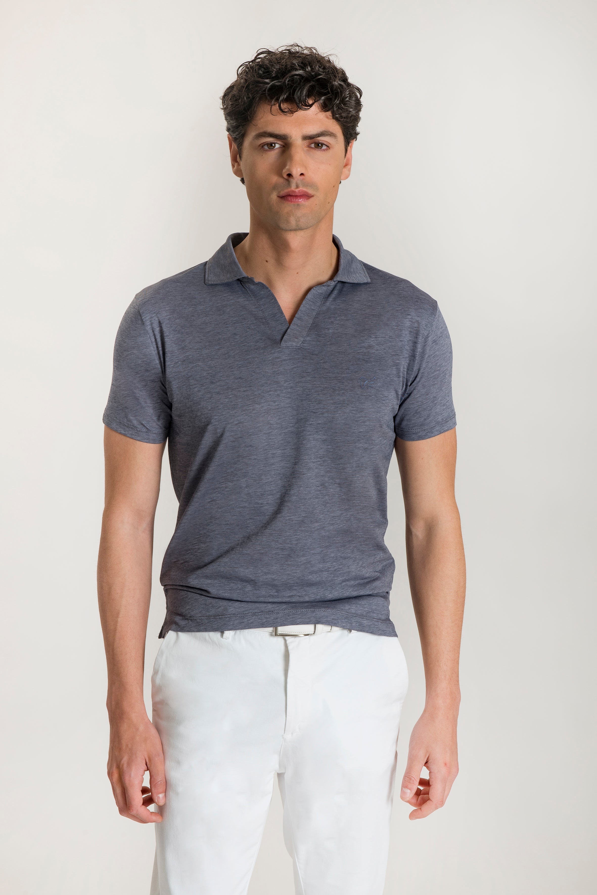Polo a maniche corte realizzata in cotone, con una sofisticata texture mélange. Il design offre una vestibilità naturale ed elastica, progettato per offrire un comfort superiore e una traspirabilità impeccabile, rendendolo un capo ideale per chi cerca un look sofisticato e allo stesso tempo rilassato, perfetto sia per contesti professionali intelligenti che per il tempo libero raffinato.