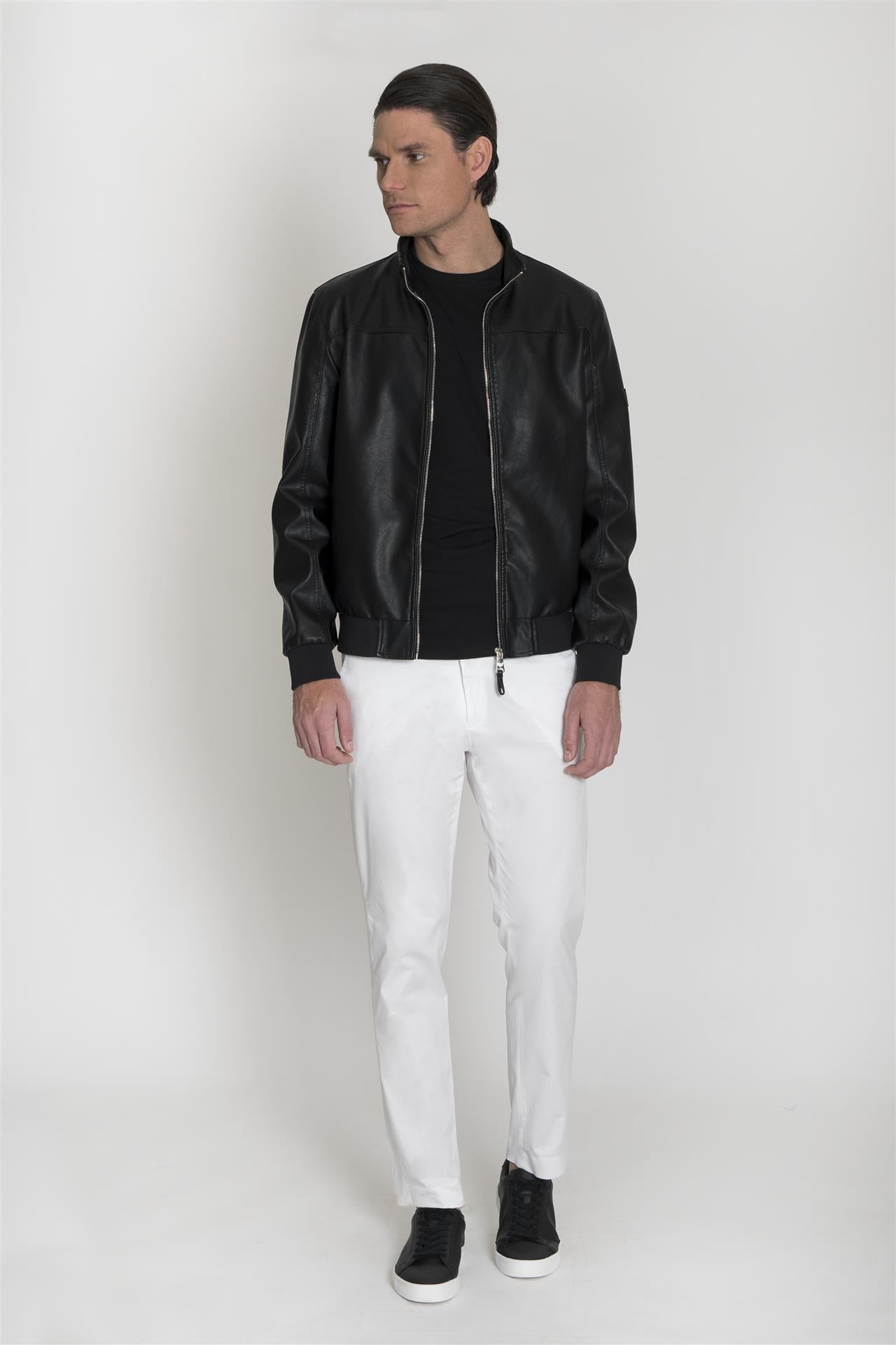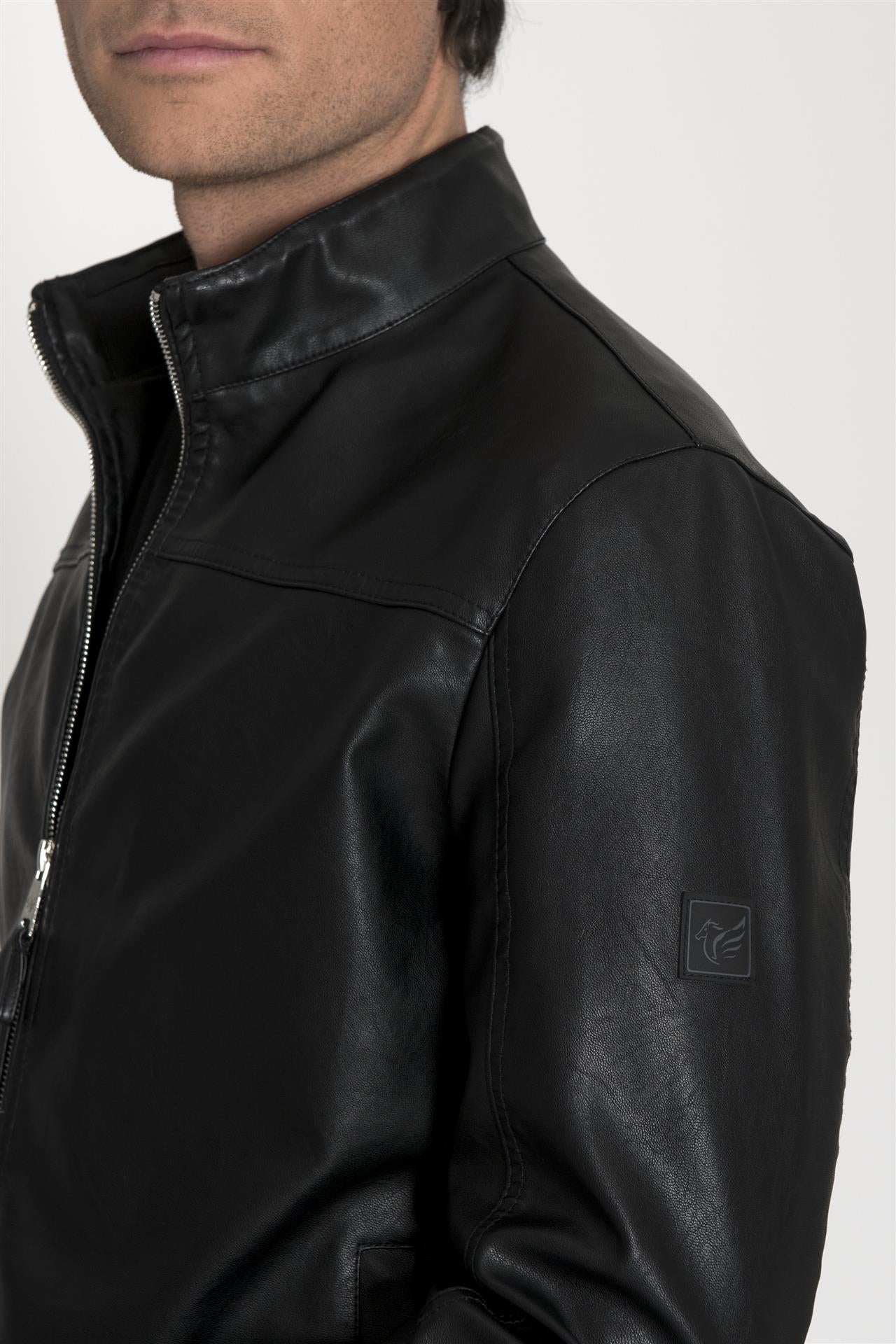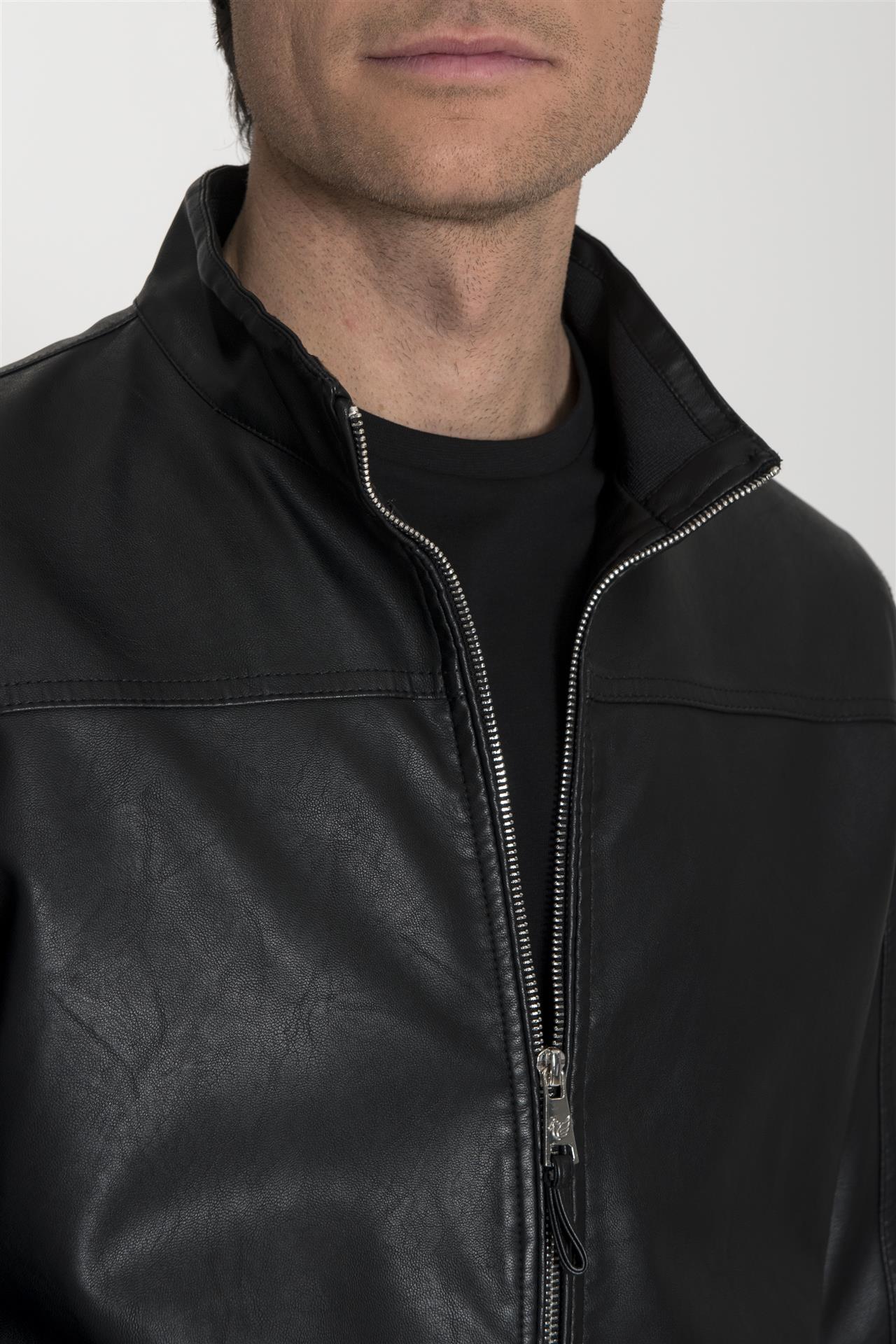 Giubbino Urban in Ecopelle - Capospalla dal design essenziale e moderno realizzato in morbida ecopelle di alta qualità. Il taglio pulito, caratterizzato dal collo alla coreana e dalla chiusura a zip integrale, offre un look grintoso e versatile, perfetto per completare outfit sia casual che smart-urban durante le mezze stagioni.