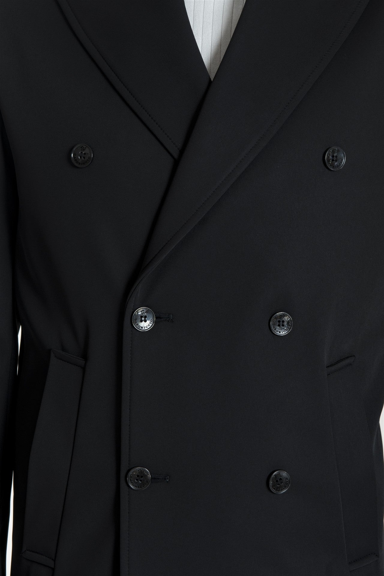 • Design doppio petto con ampi revers a lancia;