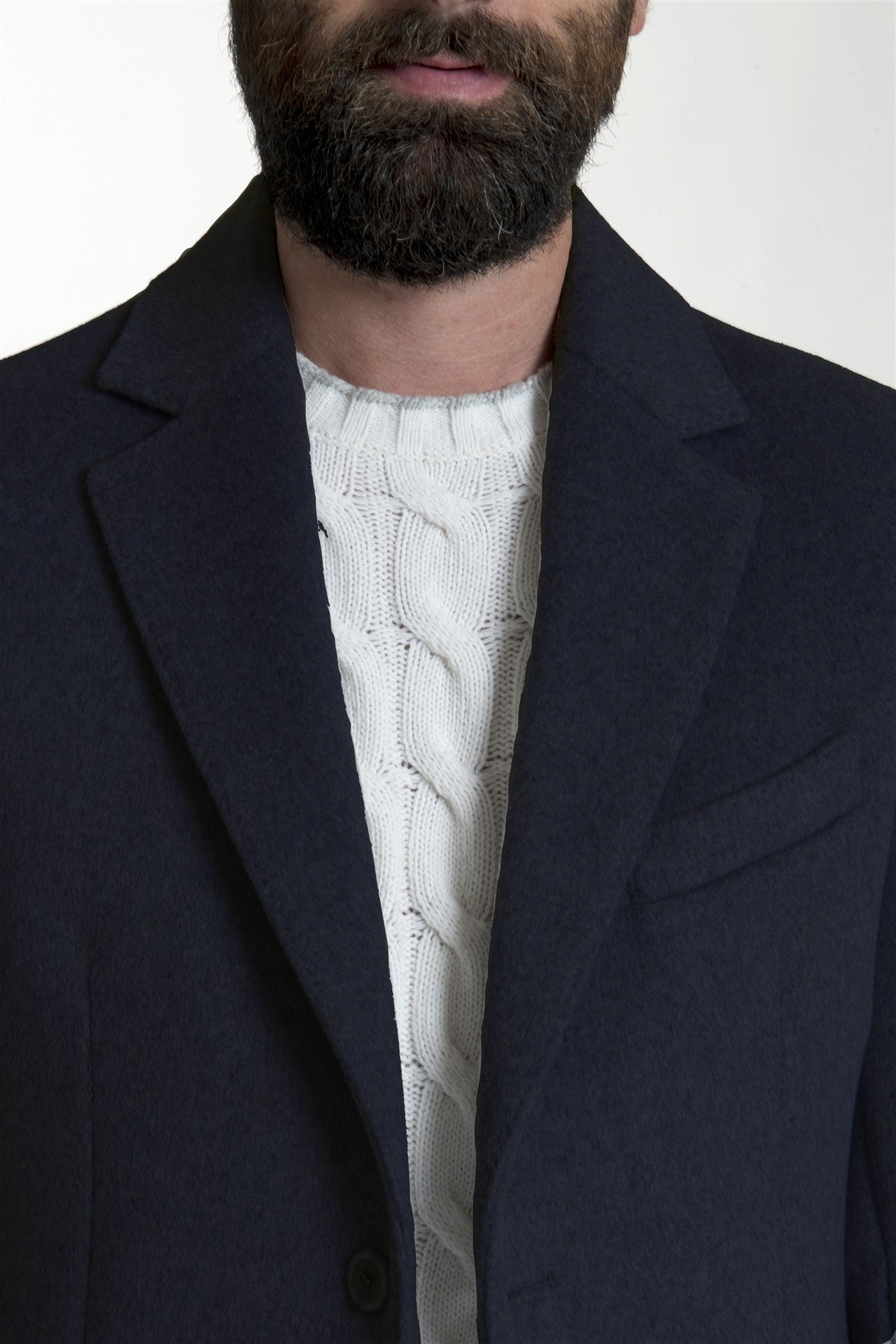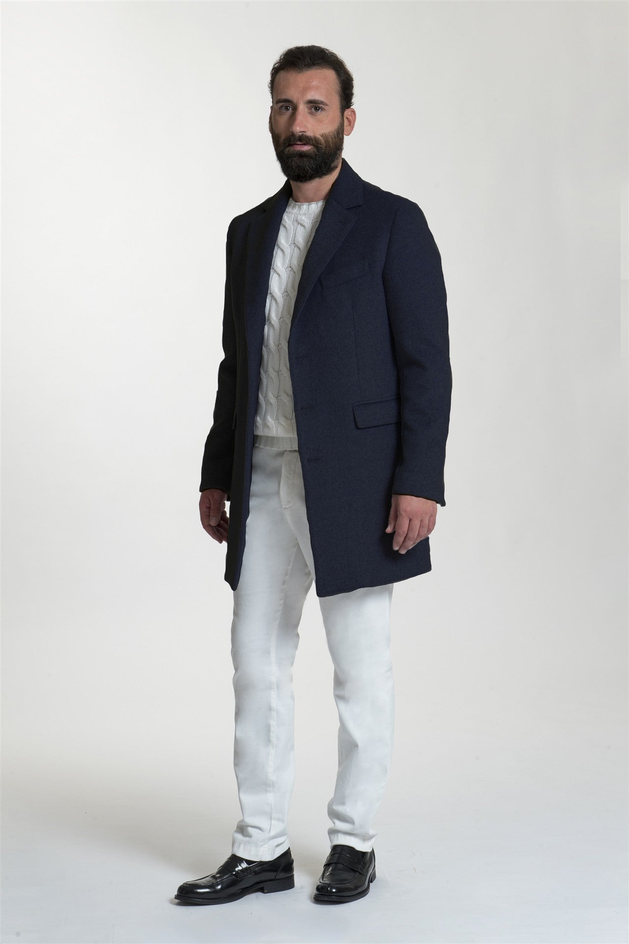 Cappotto monopetto dalla linea pulita e contemporanea, realizzato in una pregiata miscela di lana che garantisce calore e una struttura impeccabile. Il design presenta classici revers a lancia, chiusura a tre bottoni e tasche laterali con patta, rendendolo un capo esterno sofisticato e versatile, perfetto da sovrapporre a maglieria a trecce o abiti formali per un look invernale distintivo.