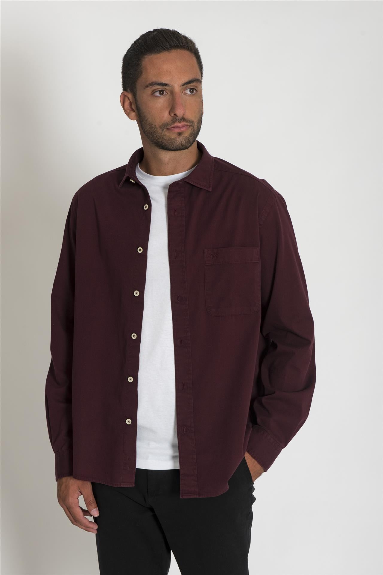 Camicia Sportiva Bordeaux in Twill di Cotone